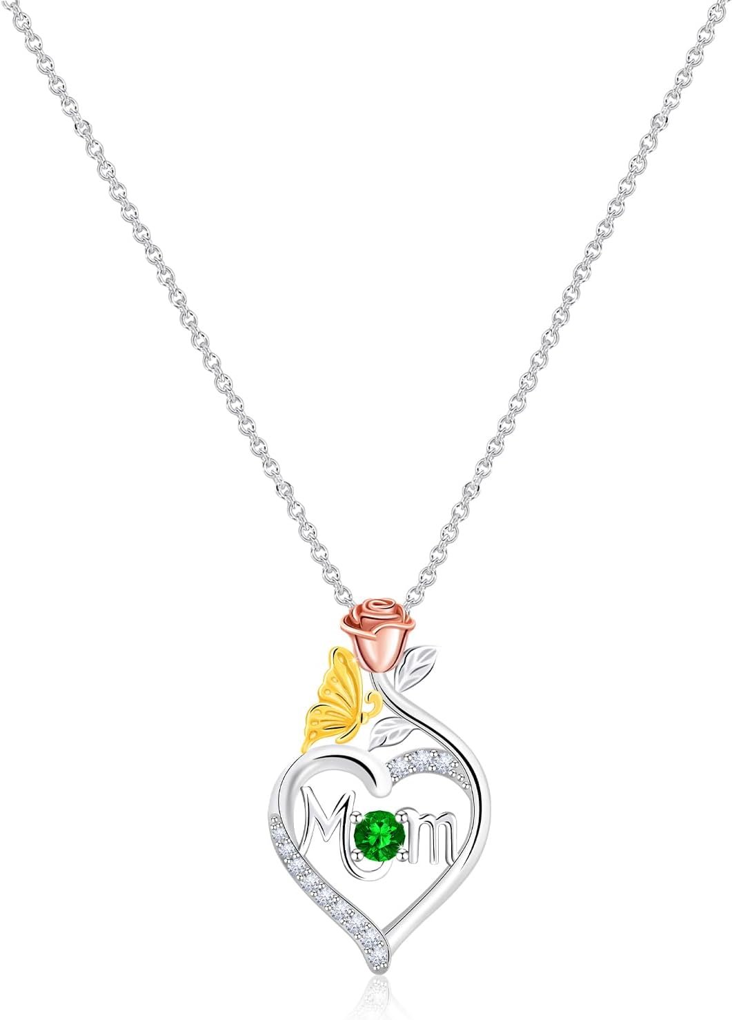 Rose Birthstone Gifts for Mom, S925 Sterling Silver Rose Hea...