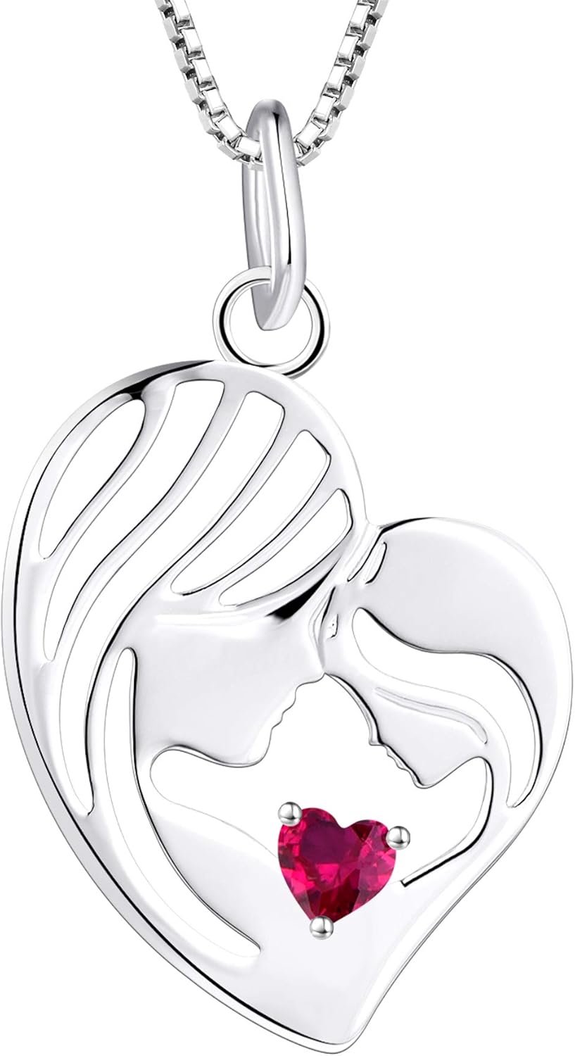 FANCIME Birthstone Mother & Child Heart Necklace –...