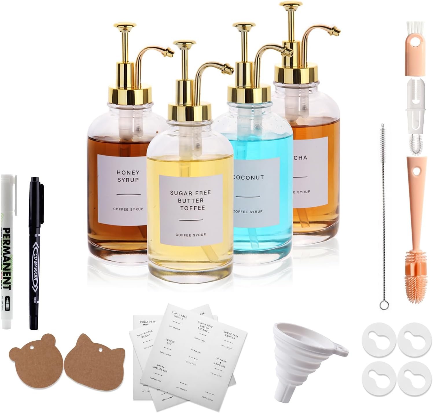 CNWSGEM Coffee Syrup Dispenser,Coffee Bar Accessories,4-Pack...