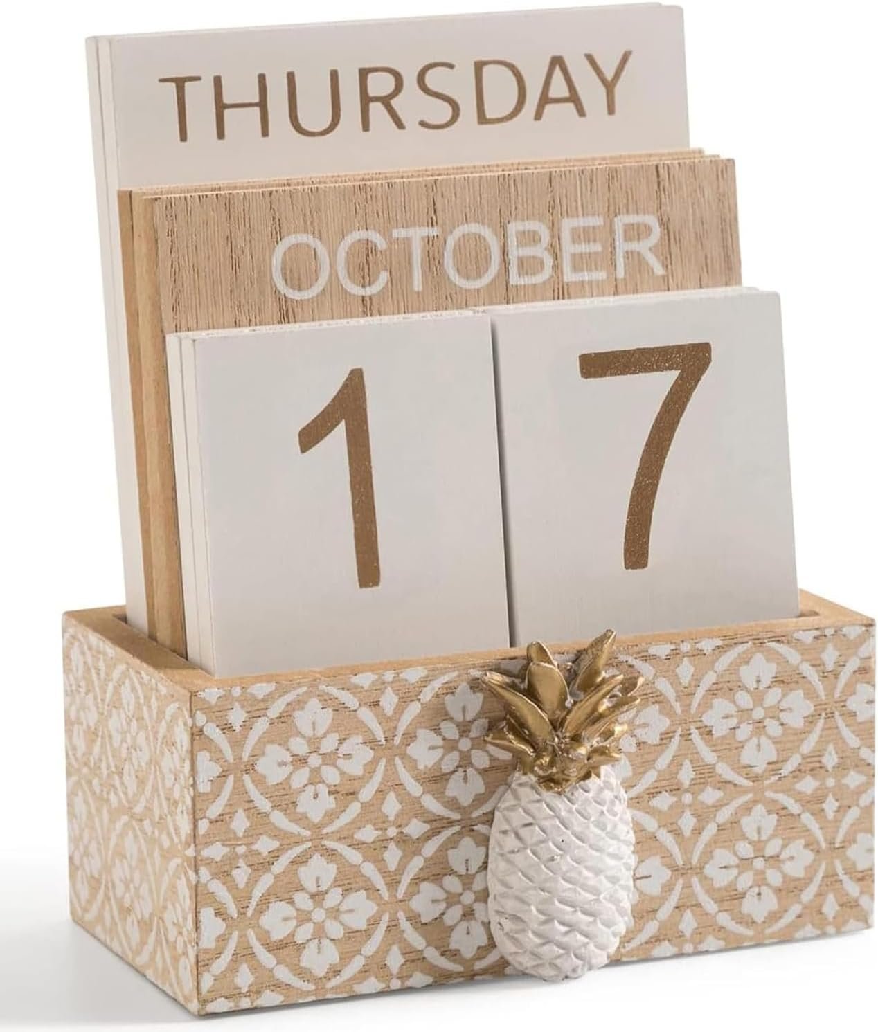 Block Calendar for Desk, Wood Desk Perpetual Calendar, Gift ...
