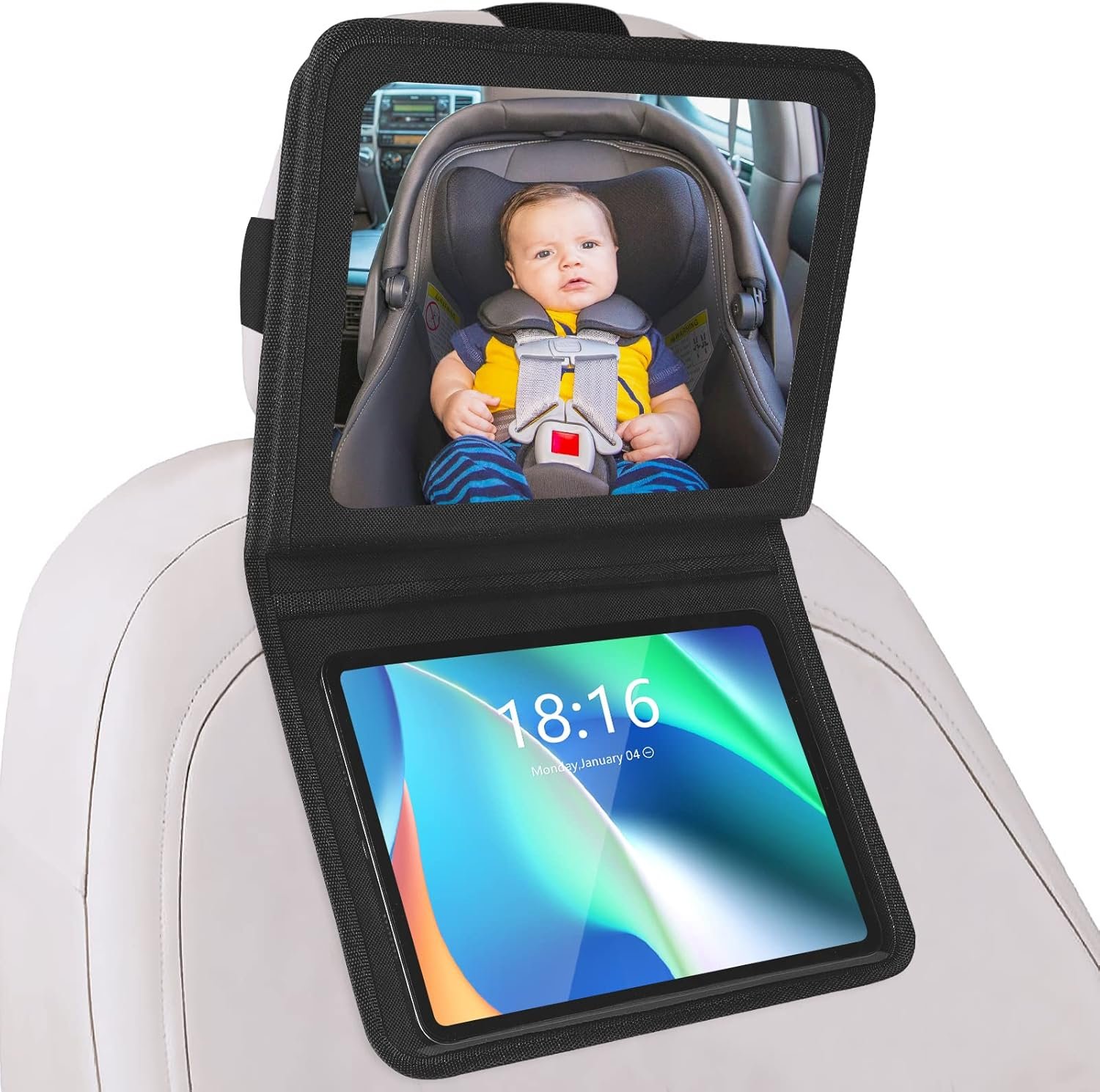 Baby Car Mirror with Adjustable Tablet Holder, Road Trip Ess...