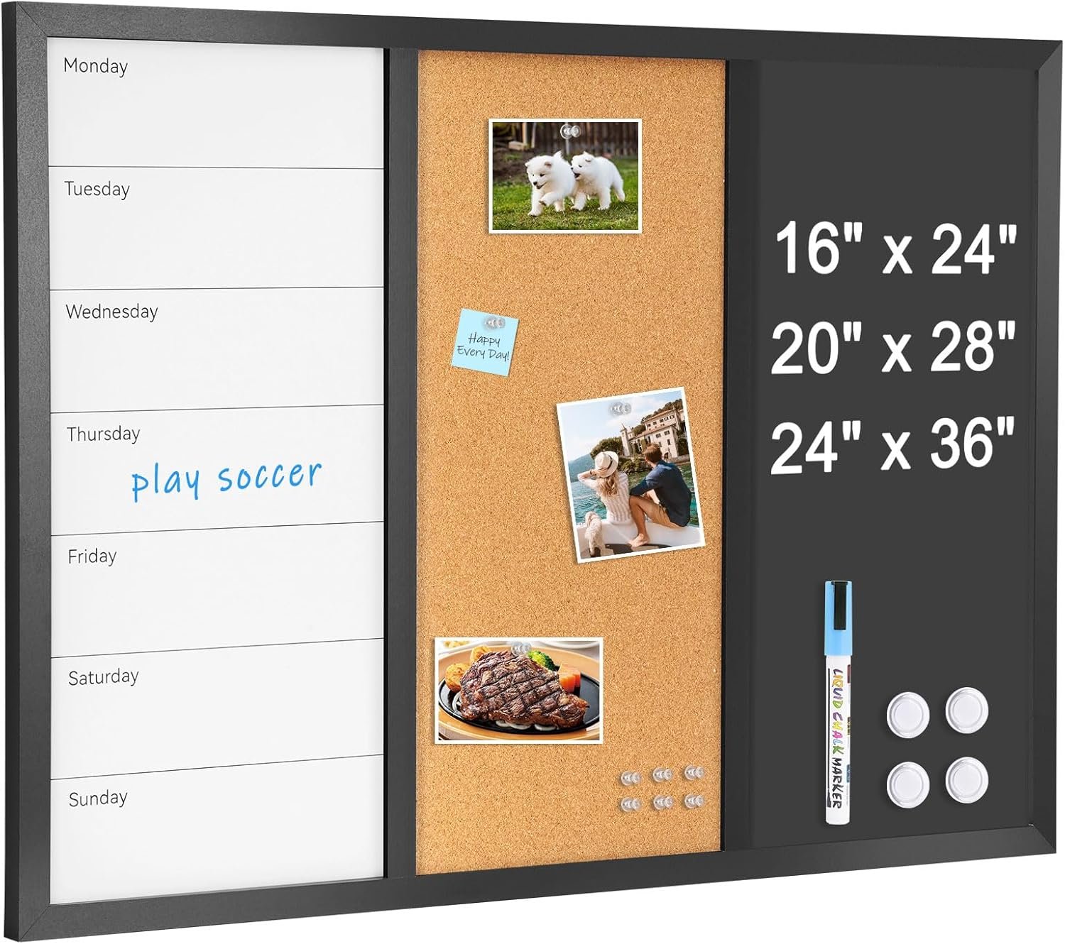 4 THOUGHT Chalkboard Corkboard Whiteboard Calendar Combo, 24...