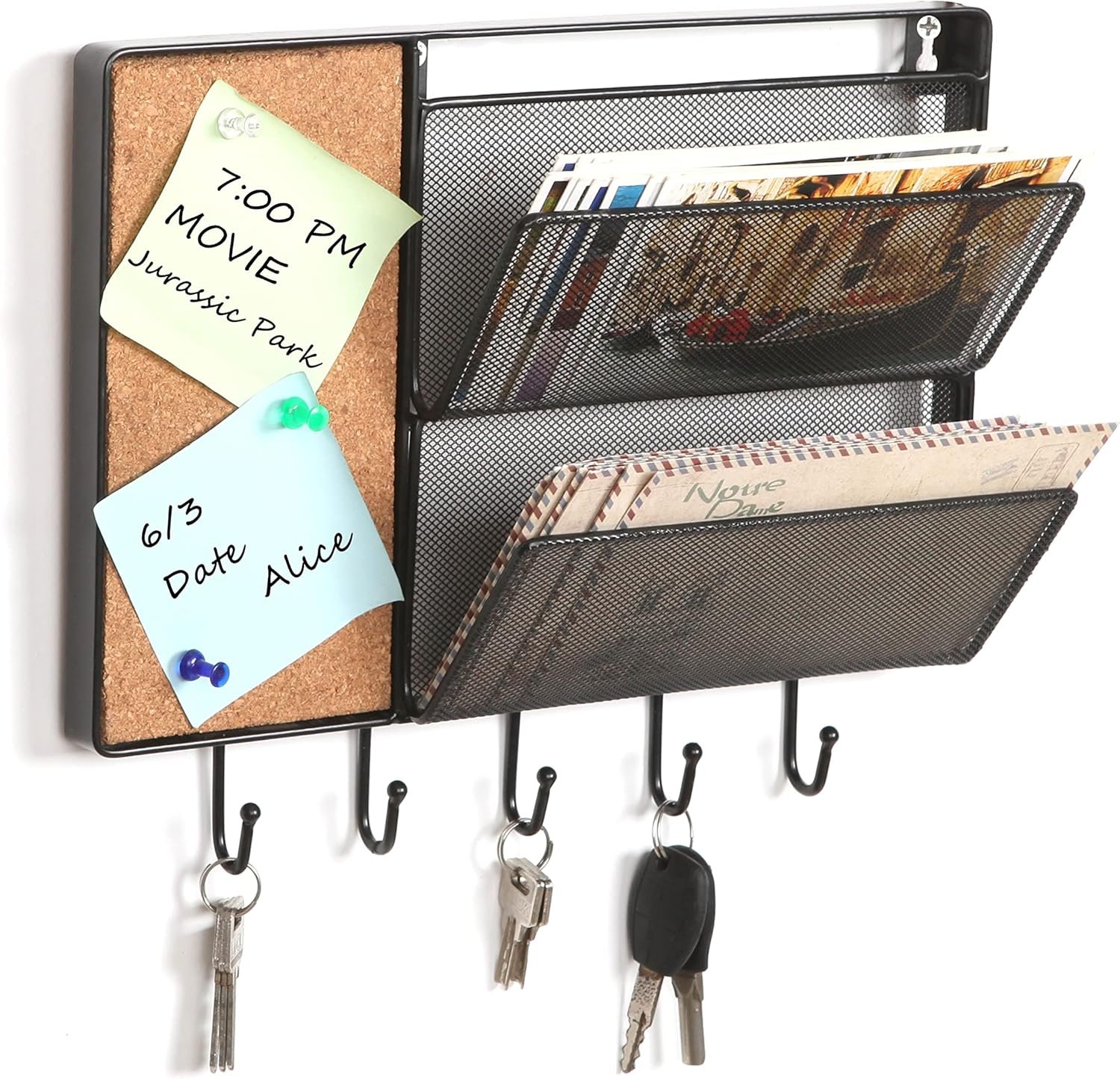 MyGift 12 x 10 Inch Wall Mounted Black Metal Mesh Entryway O...