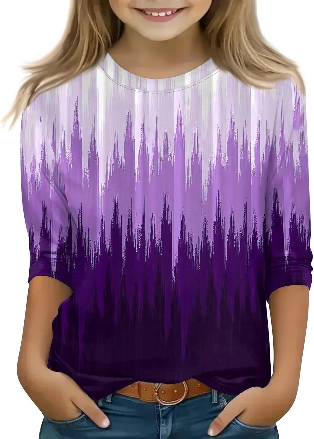 Girls Sequin/Gradient Print Casual Everyday Tops 3/4 Long Sl...