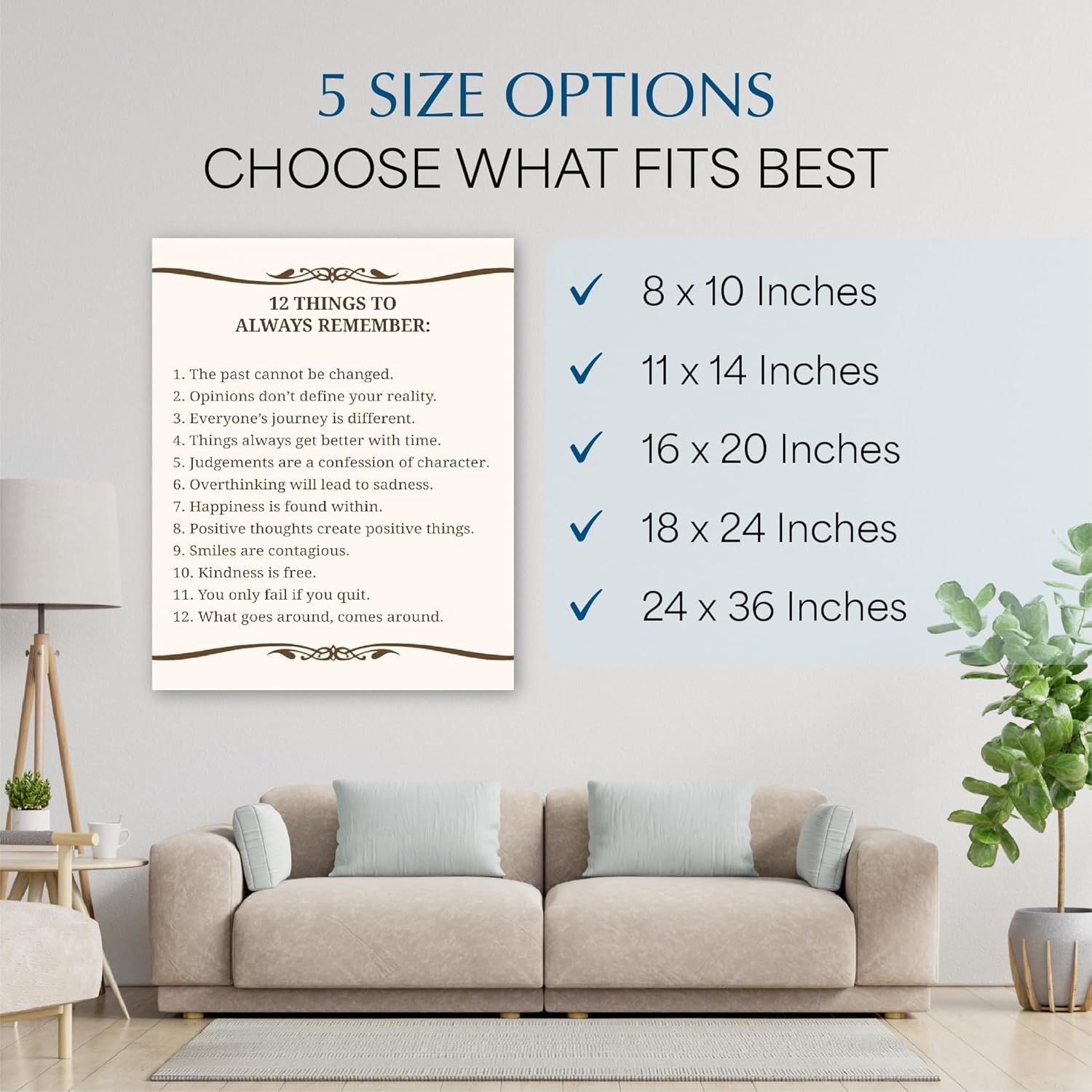 Excellent Inspirational Wall Decor: Our “12 Things To Always Remember” inspirational wall decor print is a positive affirmation that enhances any space, including living rooms, offices, bedrooms, classrooms, and children’s rooms.