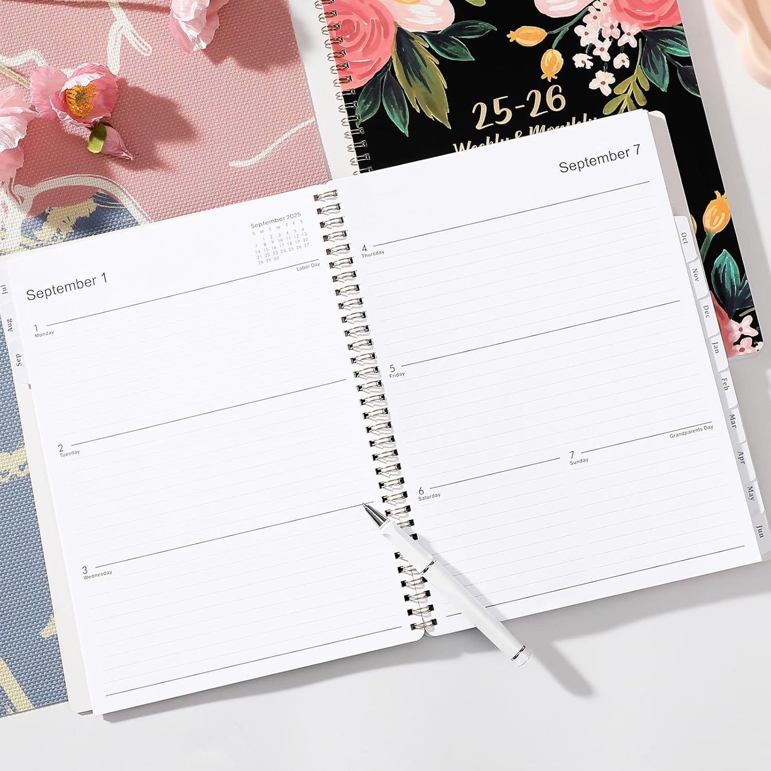 🌺 Premium Paper – Our 2025-2026 weekly and monthly planner is printed on Premium Thick, Acid-Free Paper, which shields your eyes from glare and makes writing on it enjoyable. It also allows you to plan your schedule and make long-term plans in monthly view pages without fear of bleeding through.