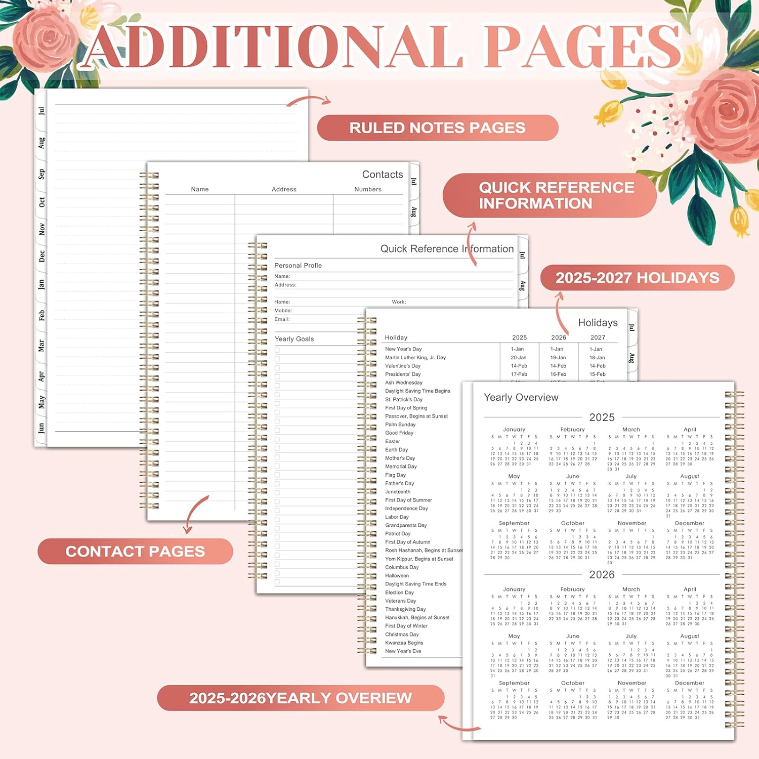 🌺 Best Choice – This 2025-2026 planner, which has an inner pocket, 12 monthly tabs is perfect for taking notes, organizing daily tasks, and traveling to work, school, or home. It also makes a thoughtful choice for friends, family, teachers, children, and busy people in general for birthdays, anniversaries.