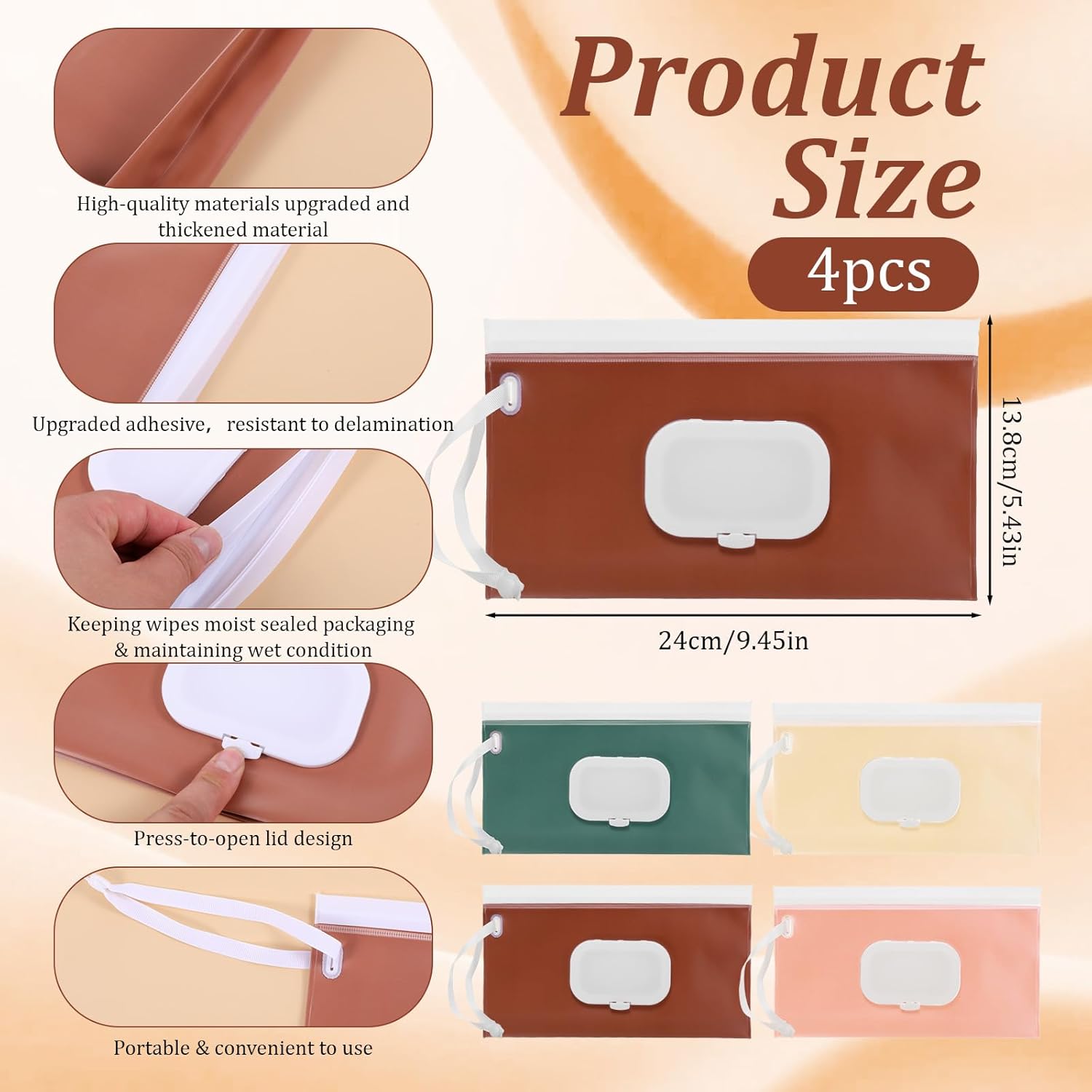 4PCS Reusable Baby Wipes Dispenser, One Press Open Refillable Baby Wet Wipes Pouch Container Wet Wipe Holder for Diaper Bag Leak Proof Refillable