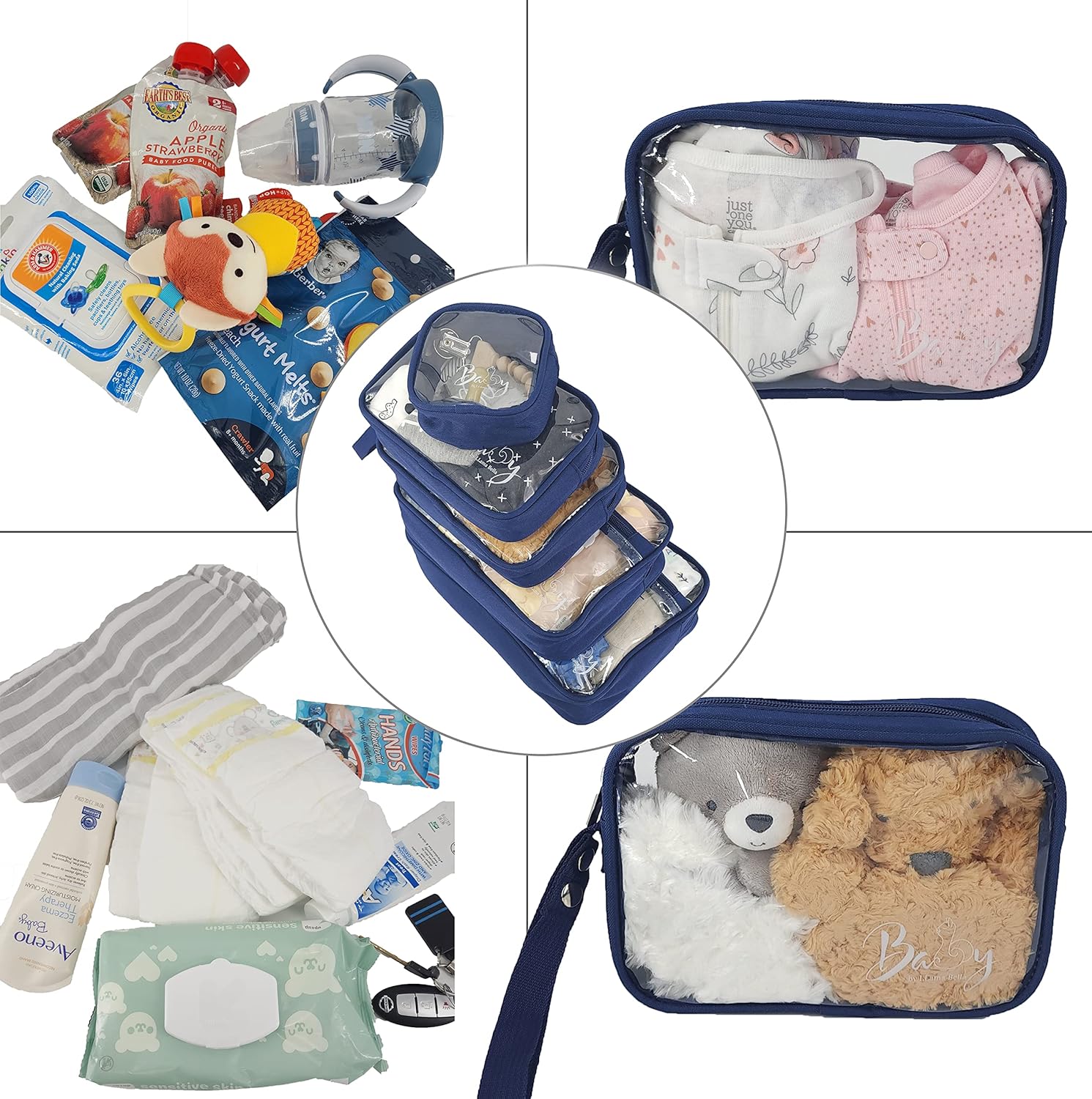 5 Piece Diaper Bag Organizer Pouch Set, Clear with Straps and Pacifier Case – Navy