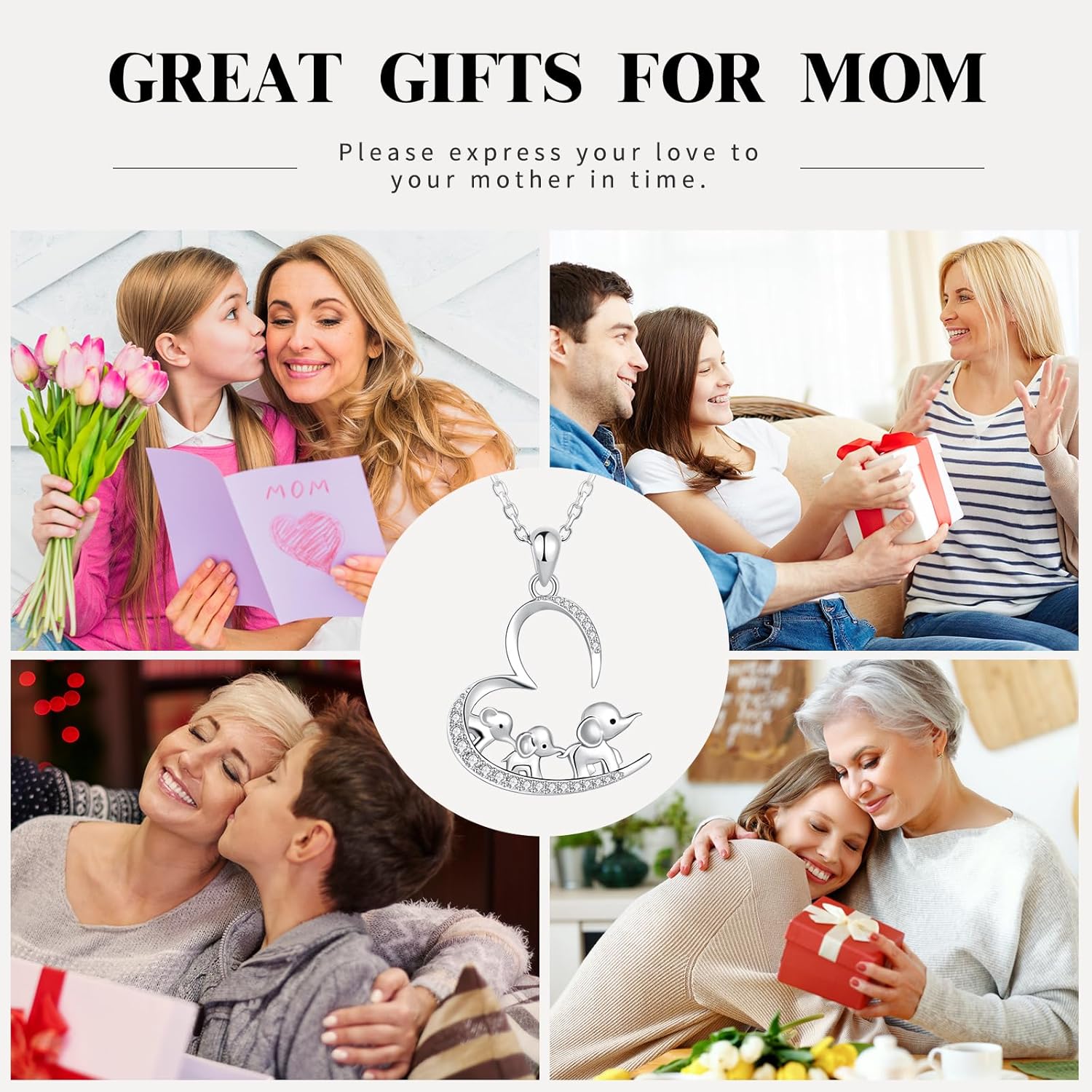 925 Sterling Silver Mothers Day Gifts Elephant Necklace 3 Elephants Family for Mom Daughter Jewelry