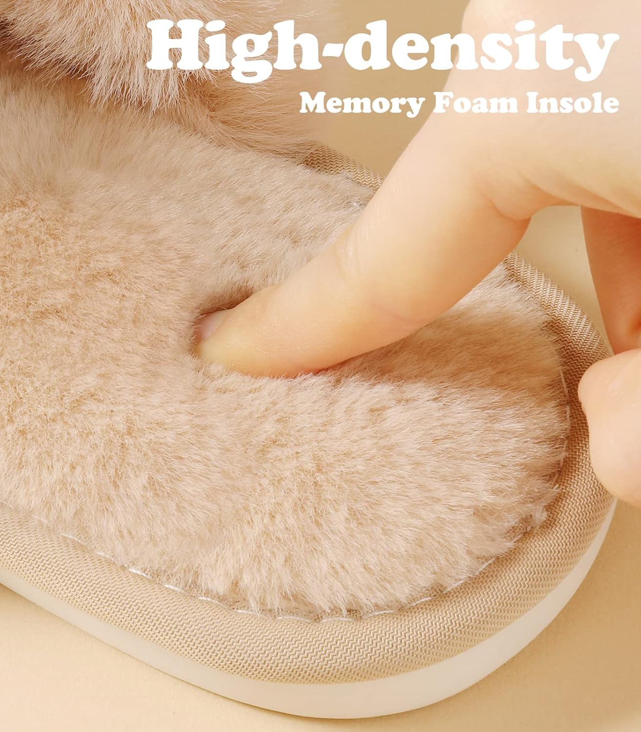 Ankis Womens Fuzzy Memory Foam Slippers Cross Band Cozy Plush Home Slippers Fluffy Furry Open Toe House Shoes Indoor Outdoor Slide Slipper