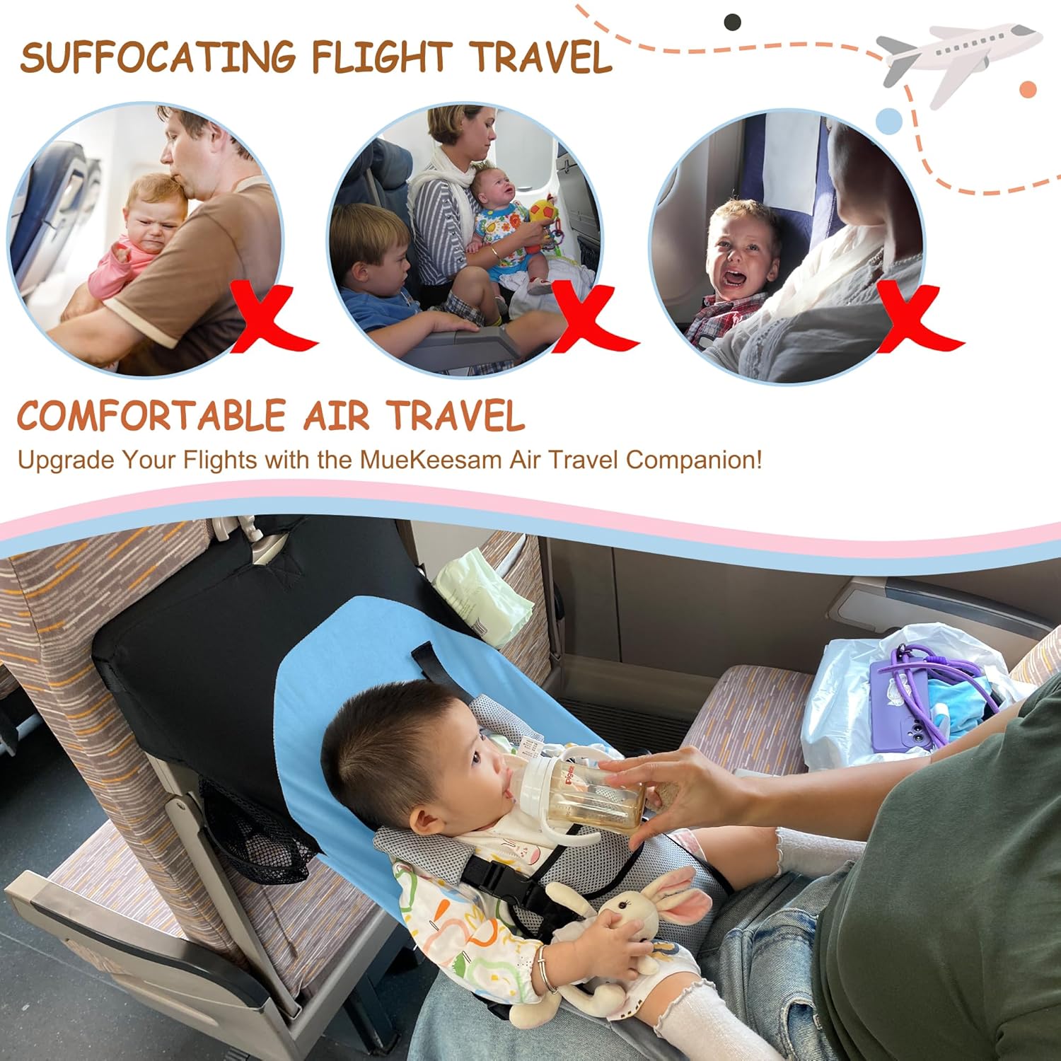 Safety and Comfort: The baby bed for airplane travel uses ultra-soft velvet fabric, specifically tailored for long-haul flights to provide a soothing touch, and increase sleep comfort and breathability to provide a more comfortable sleep environment for your child. This airplane must have for toddlers with a 5-strap adjustable harness to increase safety.