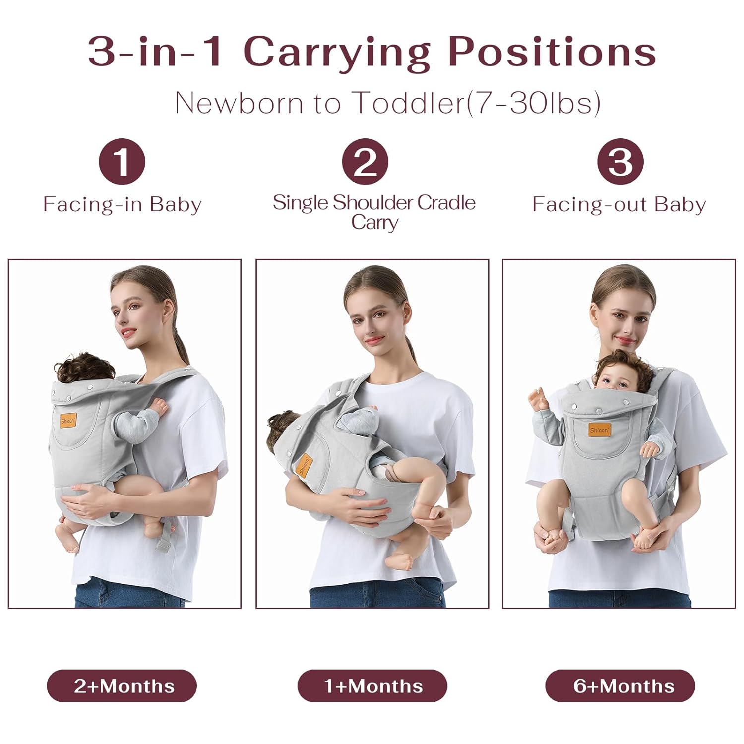 【Suitable for 7-30bls Baby】Adjustable size as your baby grows (7-31 pounds ). Shiaon baby carriers helps distribute baby’s weight evenly, reducing pressure and pain in the upper back, shoulders, neck or waist, comfortable for both parent and baby.