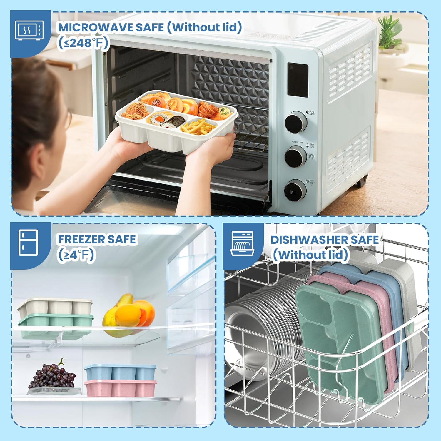 【Eco-friendly Snack Containers】The meal prep containers are made of thick, high-quality, and BPA-free wheat straw material (lid: grade 5 PP material). They are safe to use and can be used multiple times, odorless, durable, reusable, stain resistant, washable.