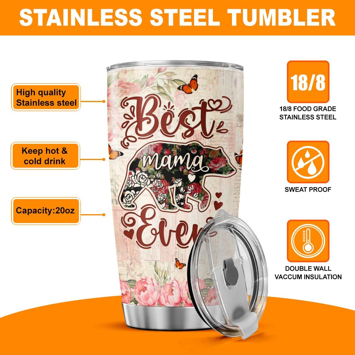 Best Mama Ever, Tumbler 20 Oz With Lid And Straw, Mama Bear Gifts, Mom Day Handle For Mother Mothers Women Funny Insulated Cups Tumblers Coffee