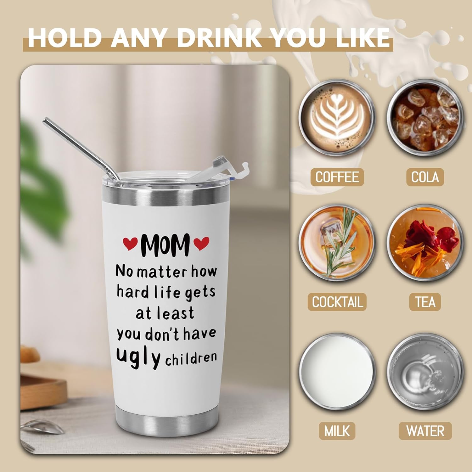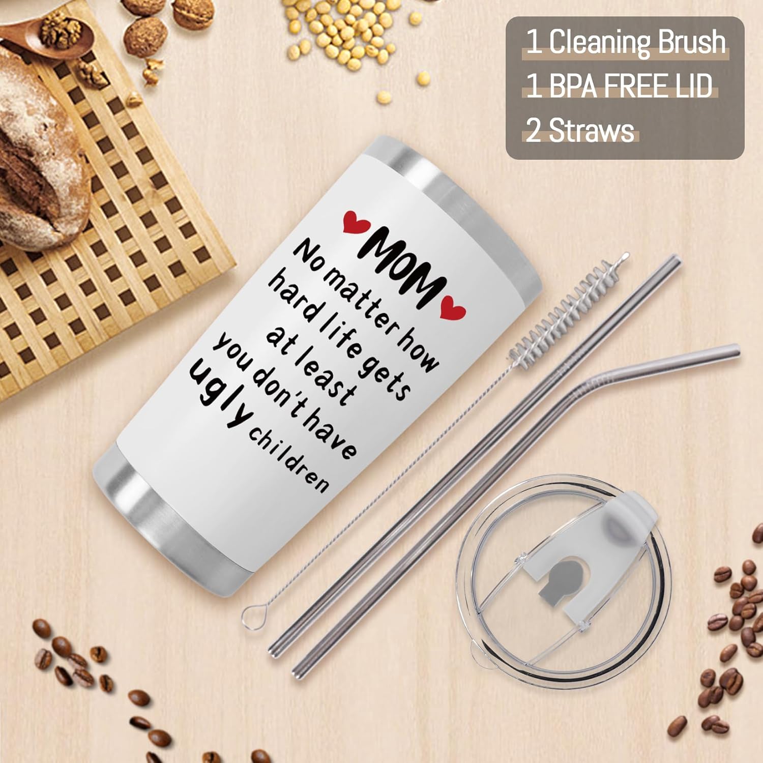 【GIFT FOR MOM】This cute and funny present comes with two straws and a straw brush, making it easy to clean and reusable. Friendly reminder: Hand wash, keep the coating and the text from fading, do not heat in the microwave.