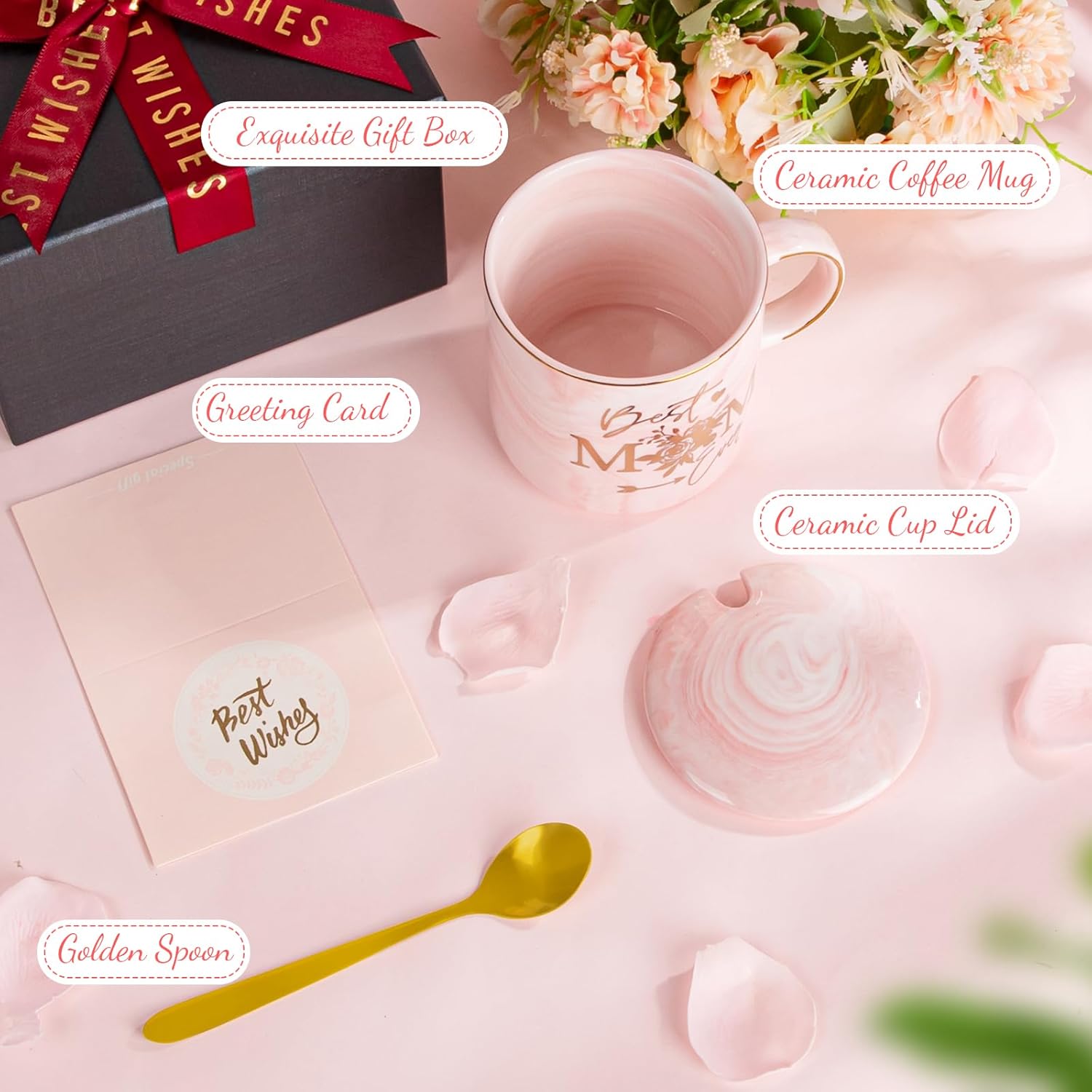 【Designed for Mom of All Ages】Pink smooth glaze, classic texture design, golden lettering “Best Mom Ever”, and a unique gold logo marking on the bottom. As you can see, all these designs make it perfect for mom of all ages. Even more importantly, each best mom mug has a one & only marble pattern, Unique Pattern, Unique LOVE. It is a great mother gift, mother birthday gifts