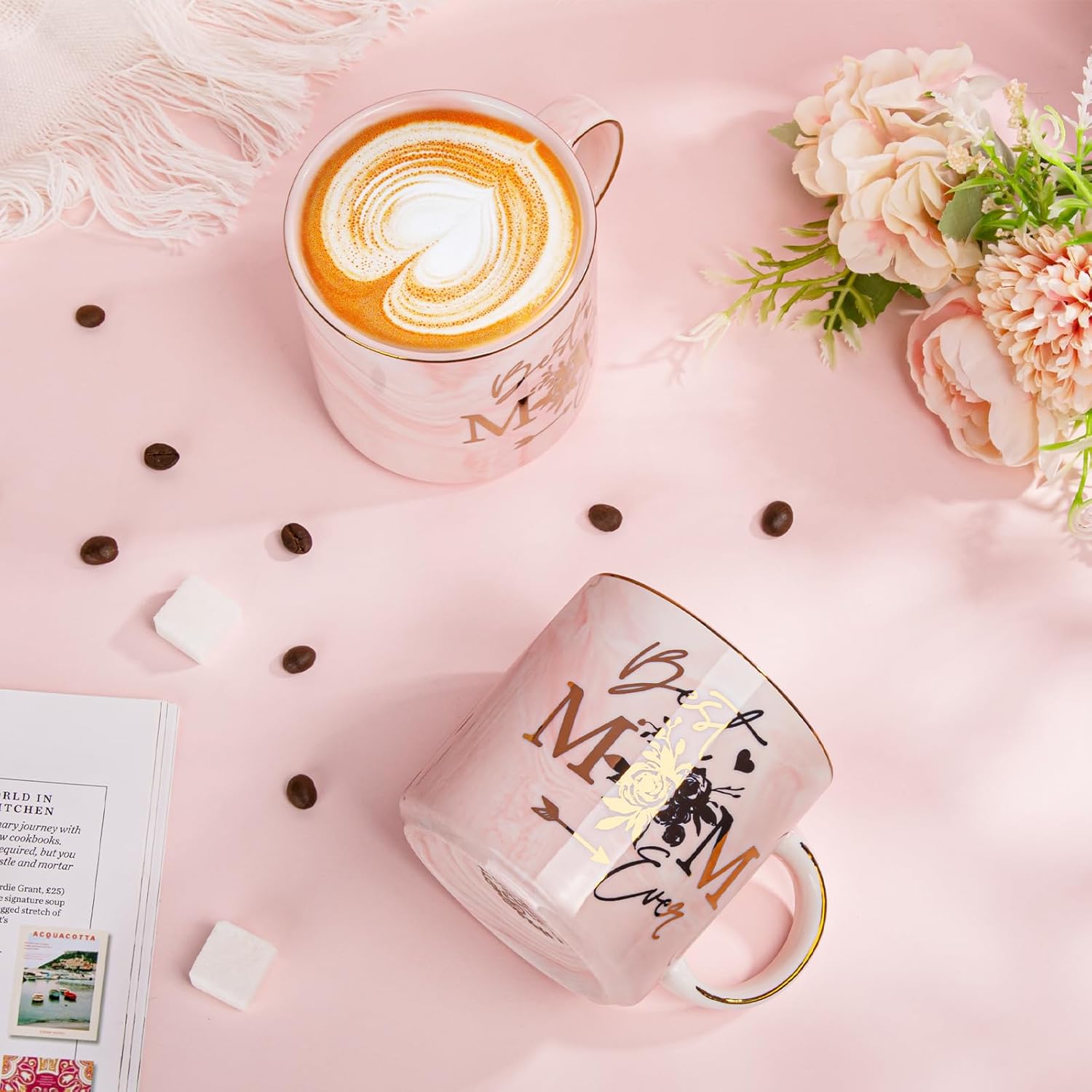 【Best Mom Ever Gifts】 Cute & Elegant, This pink marble mom coffee mug is a perfect choice for Mom birthday gift, Mother Day gifts, Christmas gift, or any special occasion & holidays mother gift, mother birthday gift, mama gifts