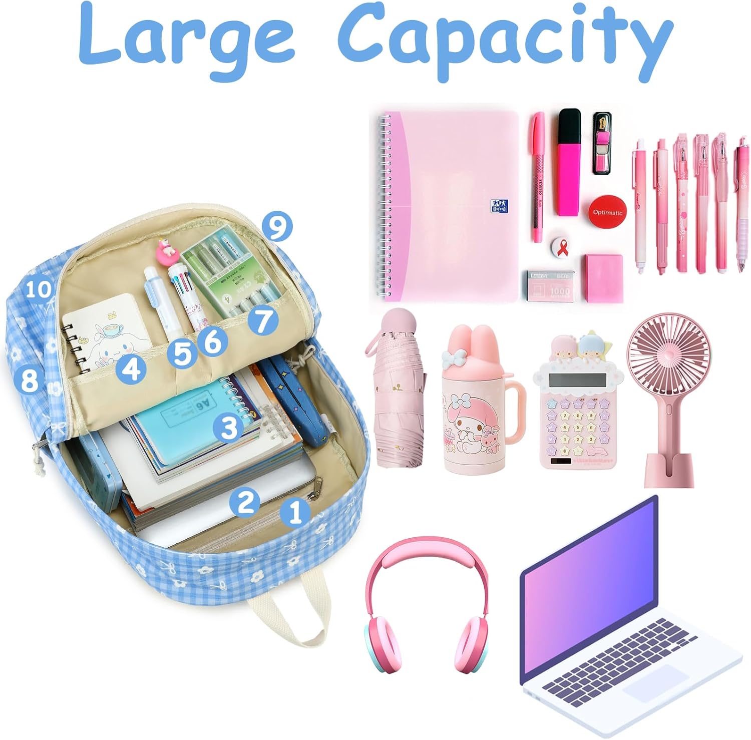 Kindergarten Backpack for girls: Features accessory zip pocket & large main compartment that can easily fit binders, folders, jackets and more. Front zippered accessory pocket is perfect for crayons, pencils, erasers, pens, glue sticks and other small items. This school bag also comes with two side pockets for water bottles and drinks, padded adjustable straps, with chest buckle & top padded handle.