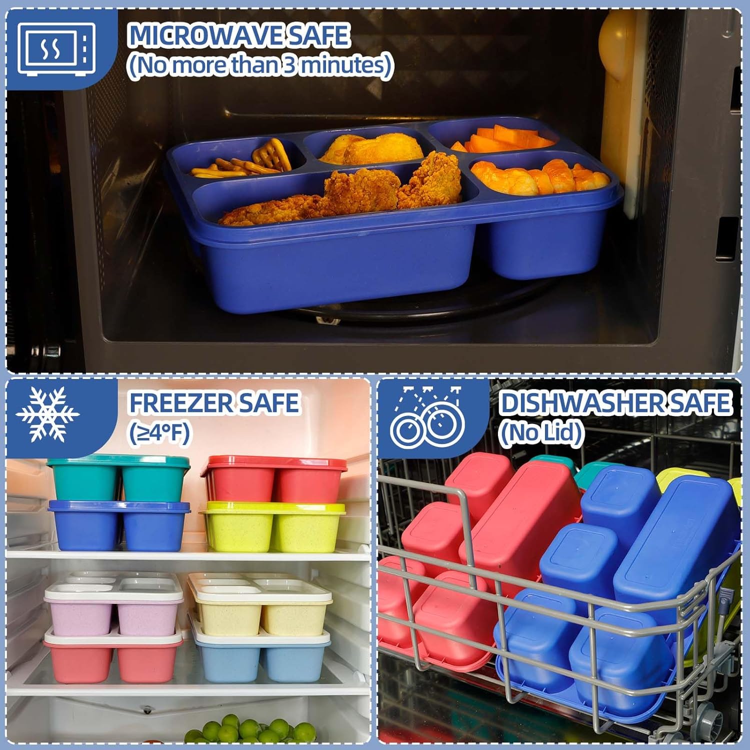 MICROWAVE, FREEZER & DISHWASHER SAFE: You can also reheat food in the microwave for up to 3 minutes using the container. Just add to the top shelf of the dishwasher. Hand washing is recommended for the lid.