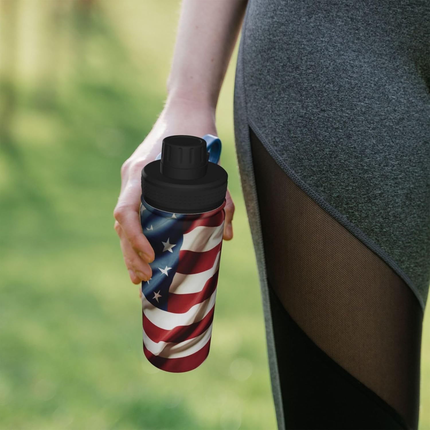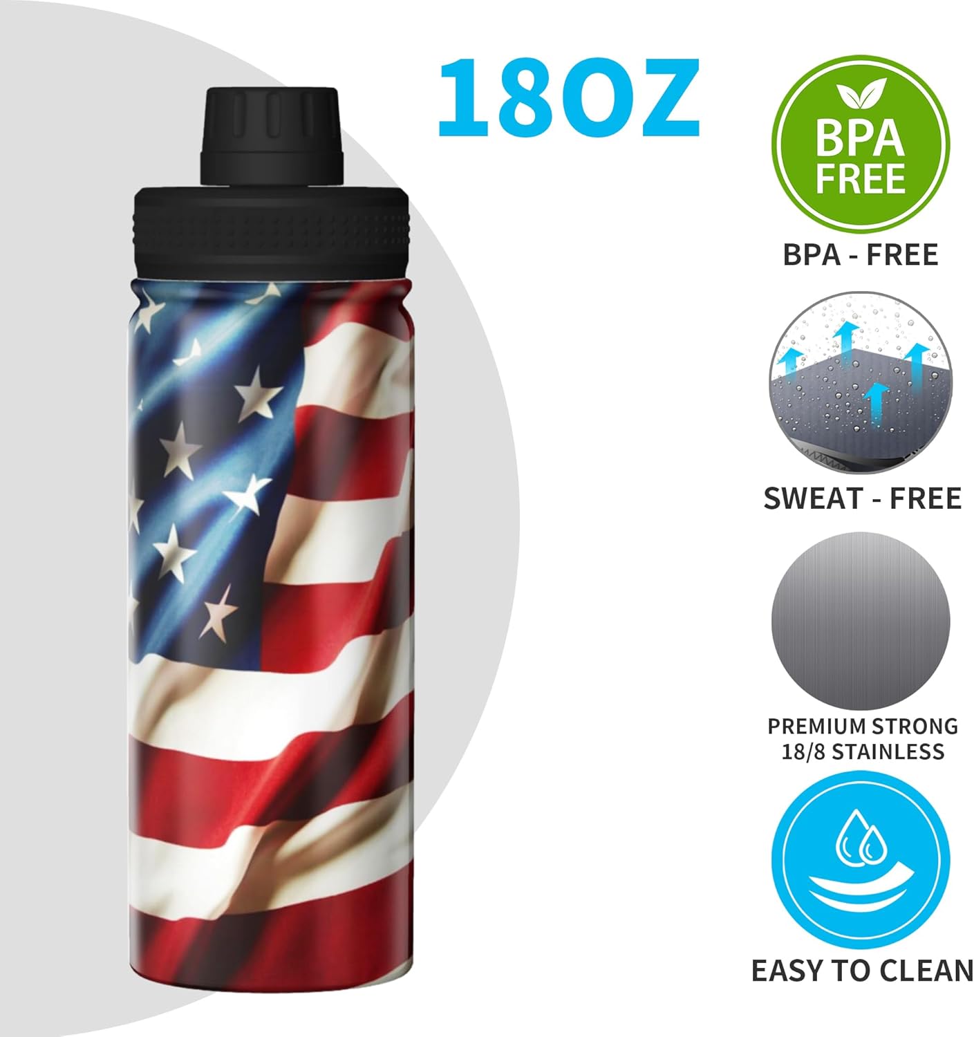 Cerburny Insulated Water Bottle Red USA Flag 18 oz Stainless Steel Bottles With Lid Leak Proof Gym Sport Water Jug For Men Women Adults