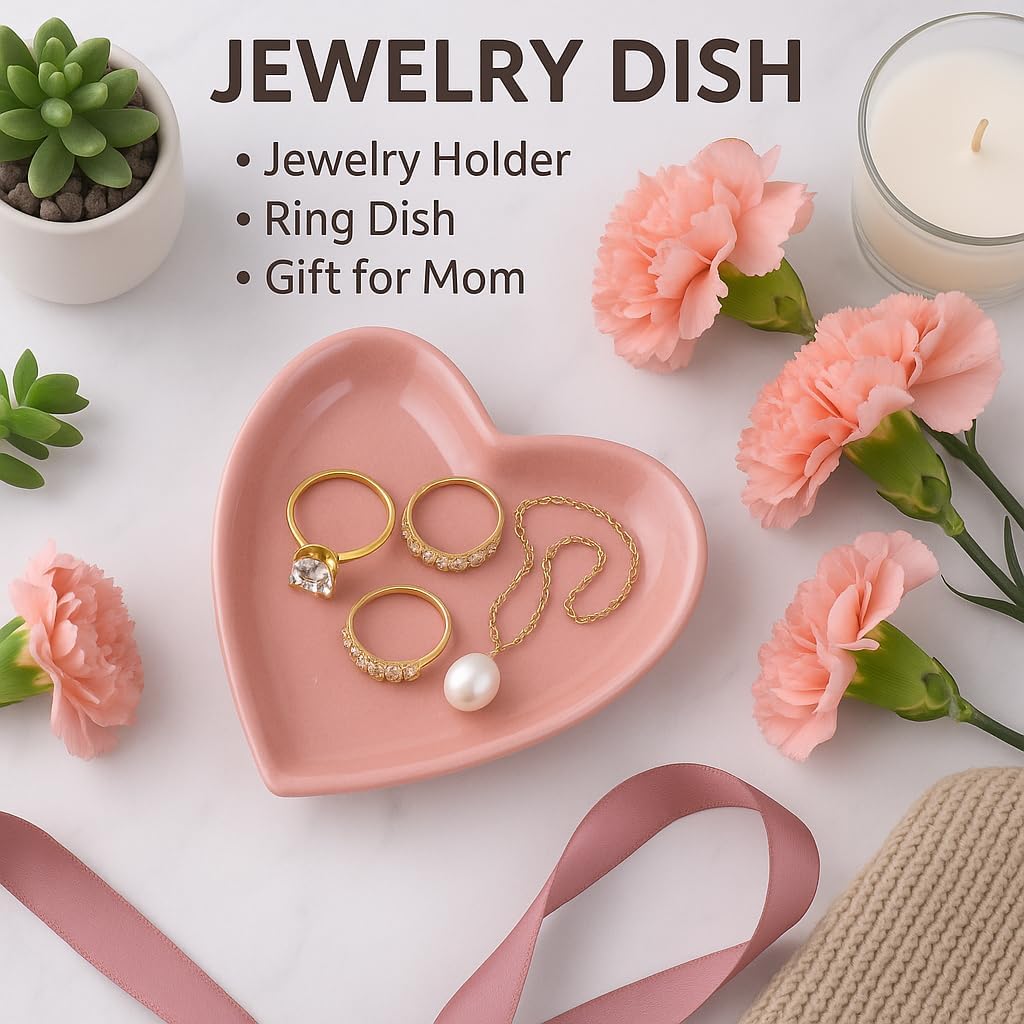 Beautiful Heart-Shaped Jewelry Tray: This soft pink, heart-shaped jewelry tray makes a perfect gift for her to store rings, earrings, and other precious trinkets. A thoughtful addition to any dresser or vanity.