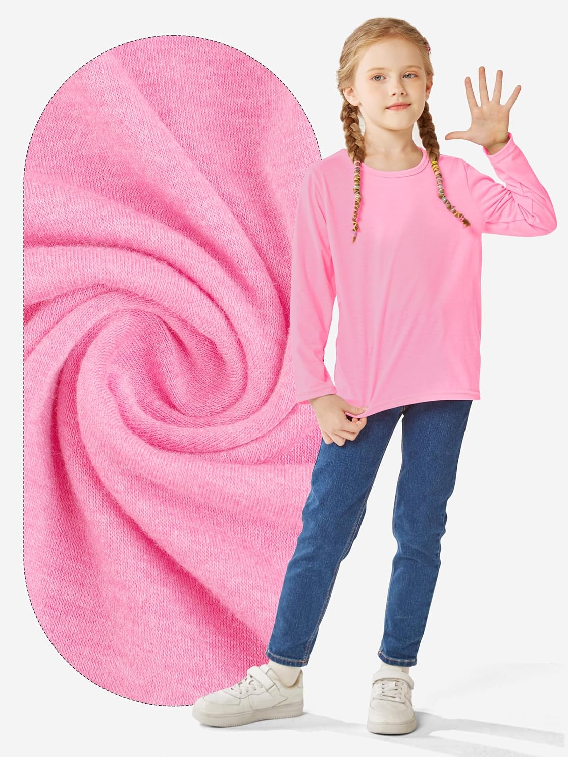 Cooraby 5 Pack Girls Long Sleeve Tees Girls’ Soft T-Shirts Kids Basic Crewneck T-Shirts Top for Teen Youth Girls, 2T-14Y