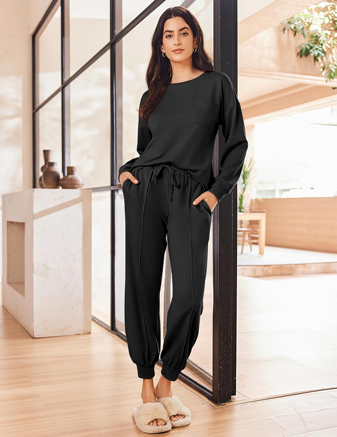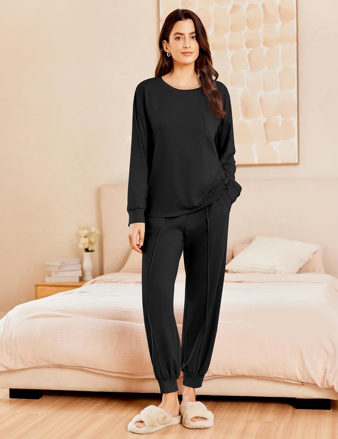 Ekouaer Lounge Sets for Women 2 Piece Long Sleeve Jogger Pajama with Pockets