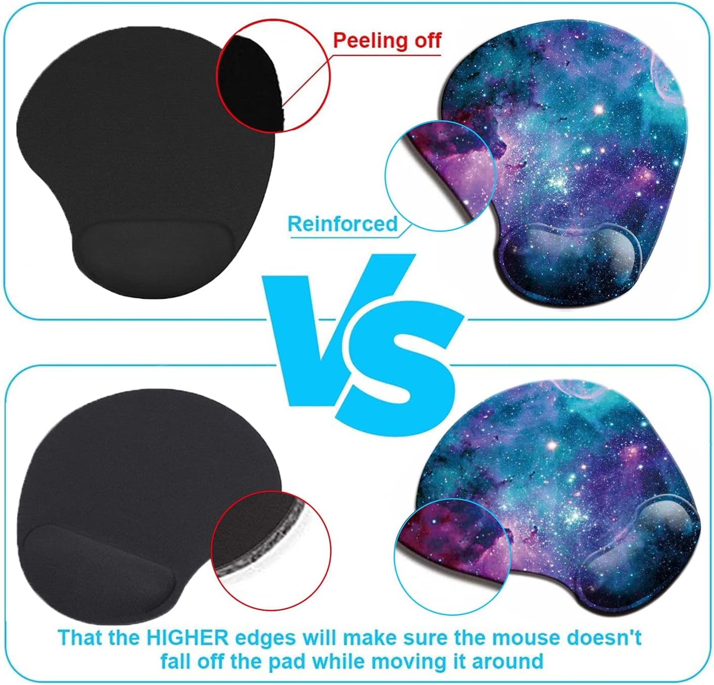 Ergonomic Mouse Pad with Wrist Support,Mouse Pads with Non-Slip PU Base for Home Office Working Studying Easy Typing & Pain Relief Blue Nebula