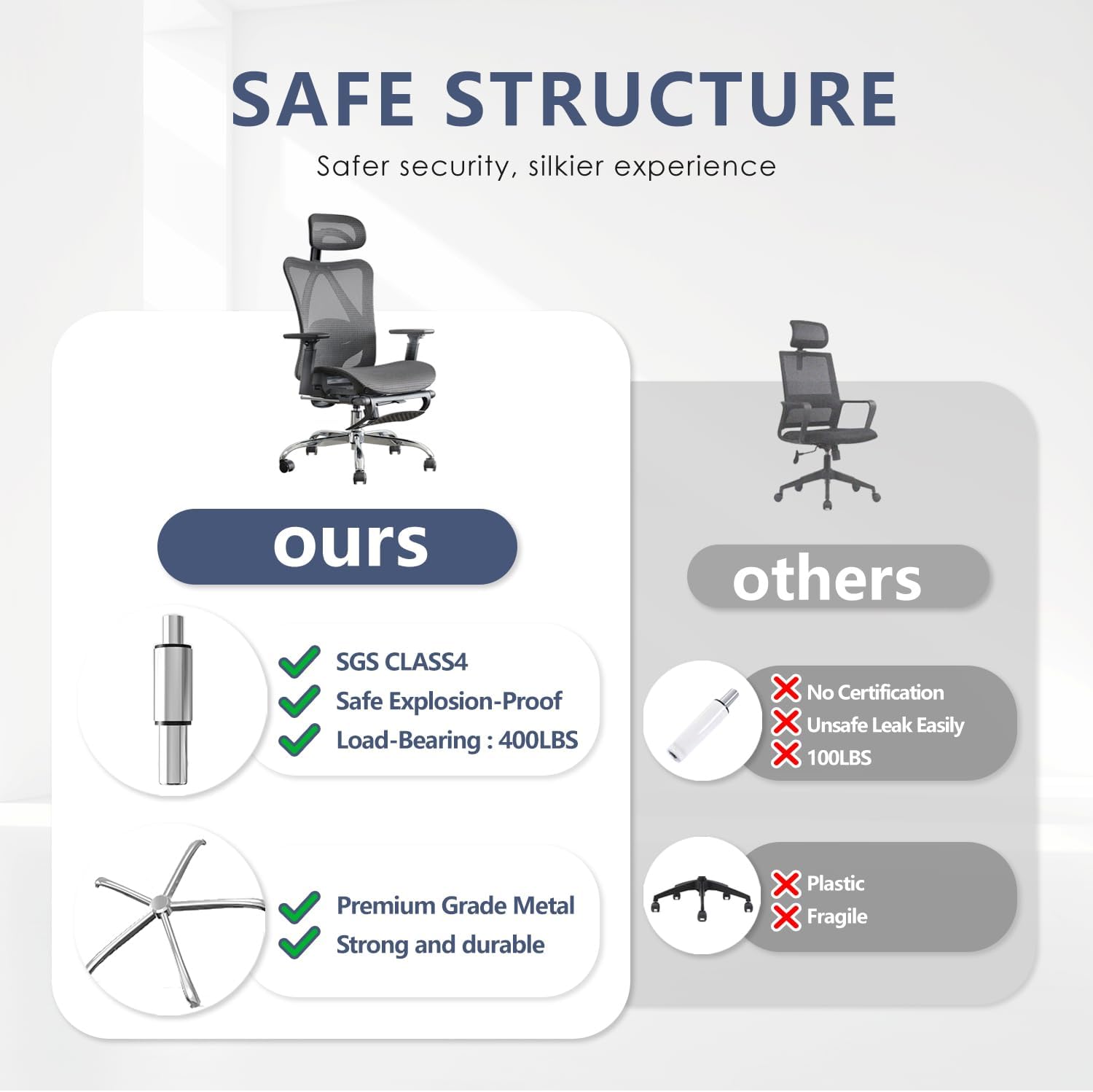 Safety Certification:Office chair has passed professional tests such as SGS, TUV, and BIFMA, so you don’t need to worry about the reliability of all components. The gas lift is leak-proof and explosion-proof, ensuring safe height adjustment. The base is made of high-strength metal, and the chair can easily bear a weight of 400 pounds