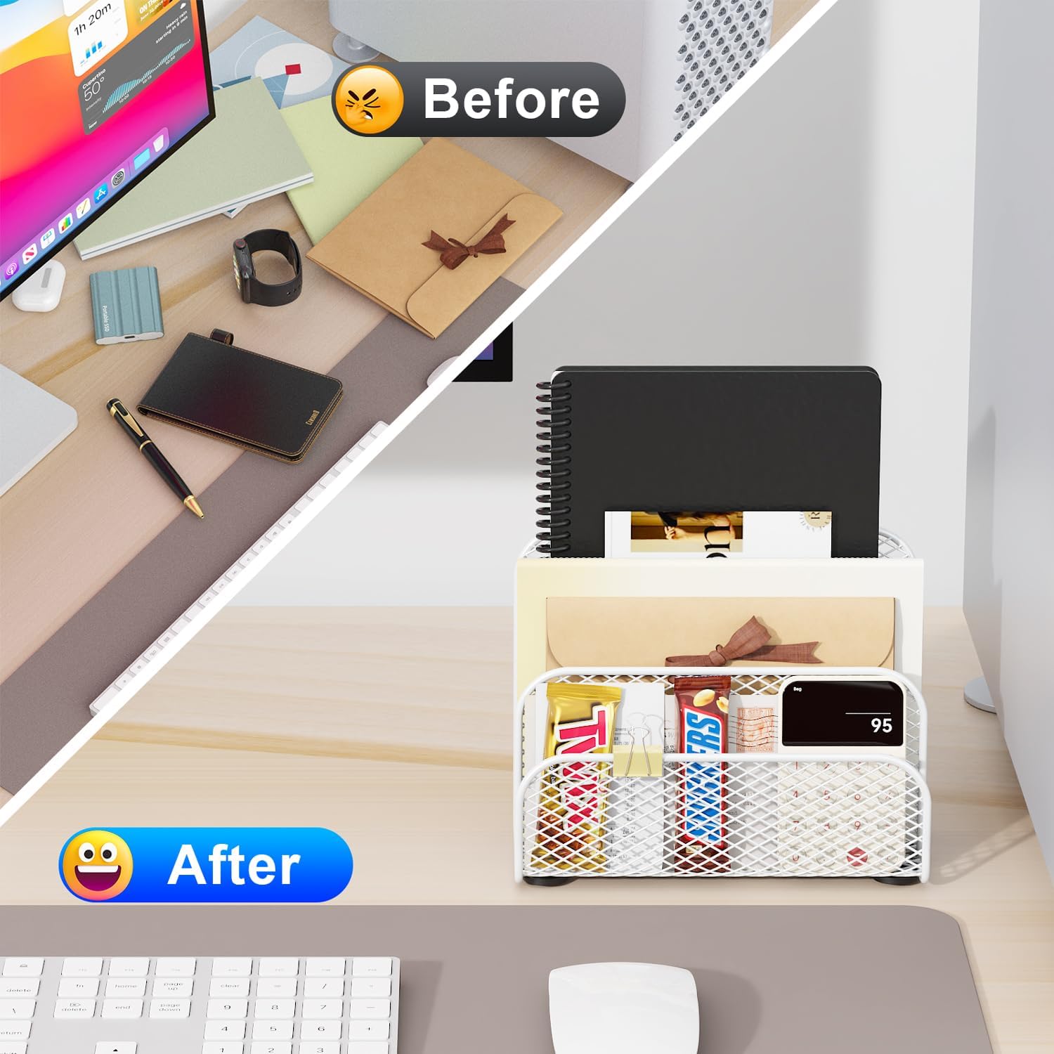 【Space-Saving】This compact desk mail holder measures 6.6*5.4*3 inches, effectively reducing desk clutter while maximizing desk space utilization and keeping the desk tidy.