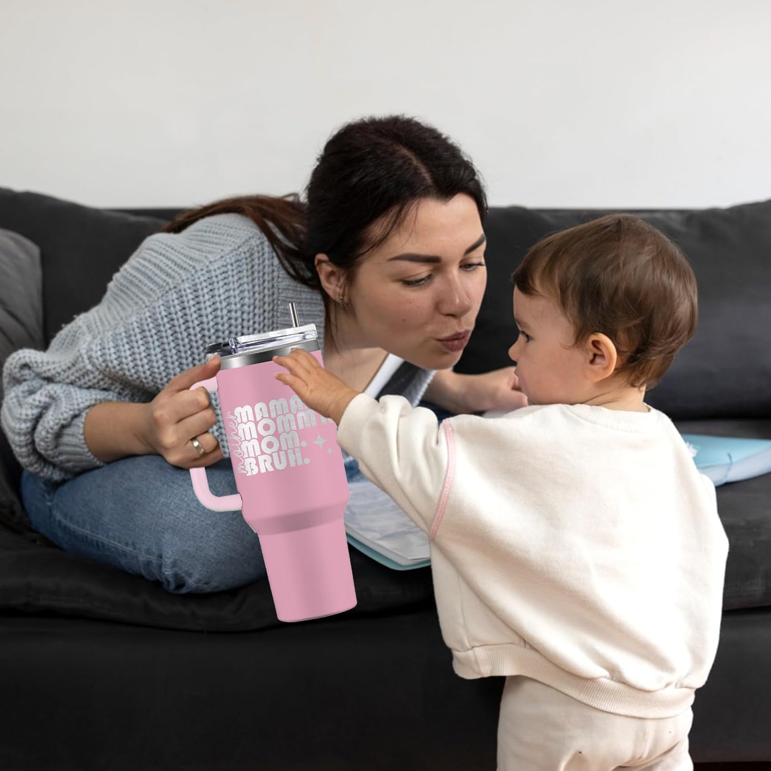 Gifts for Mom, Best Mom Ever Tumbler 40oz with Handle and Straw, Mama/Mom Gifts From Daughter Son, Mom Birthday Gifts, Mothers Day Presents Ideas, Christmas Gifts for Best Mom Ever Mug, Pink
