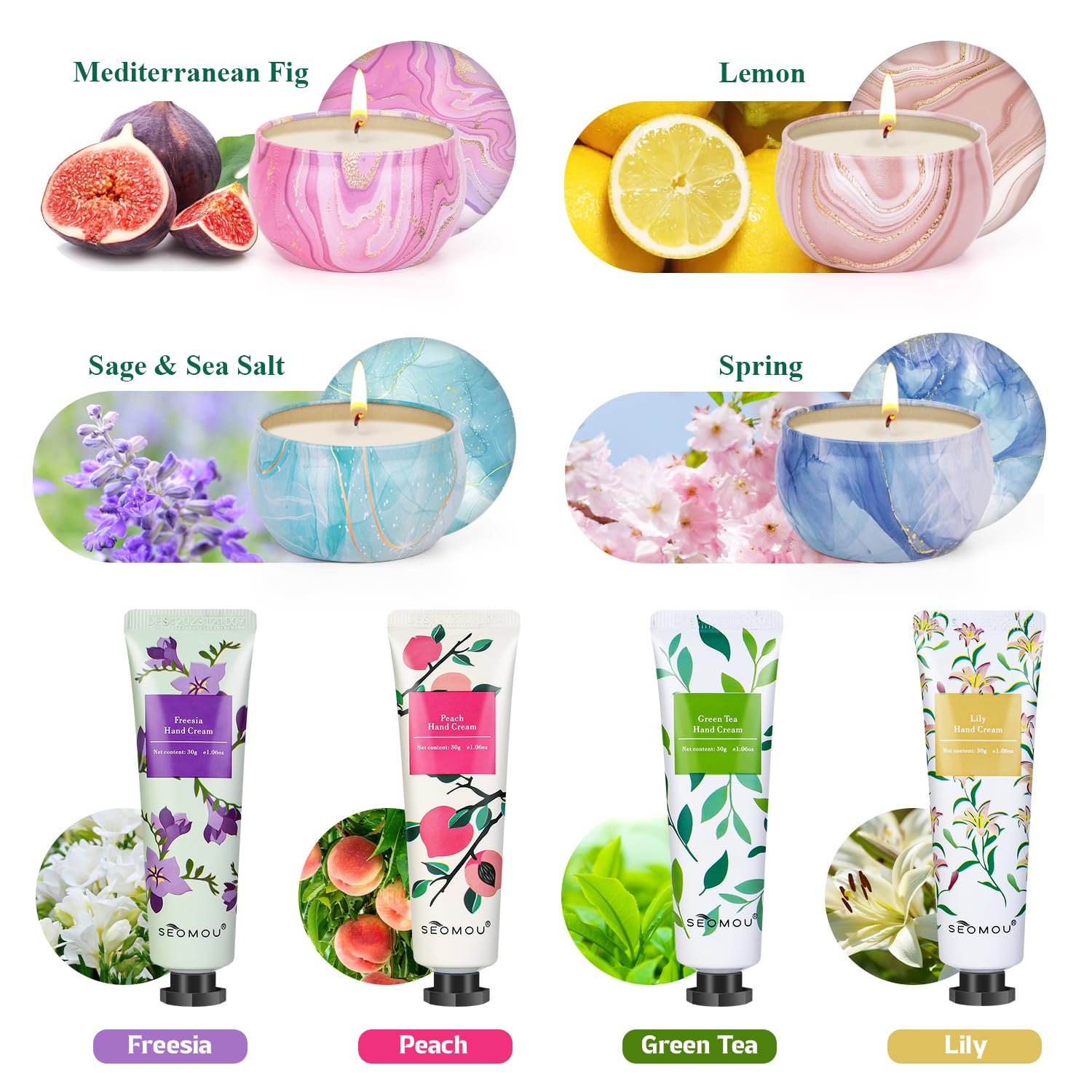 AMAZING GIFT To OTHERS & YOURSELF: Each candle and hand cream carefully developed scents that provide soothing aromatherapy. Whether you’re unwinding after a long day or hosting a cozy gathering, there’s always a perfect scent to set the ambiance