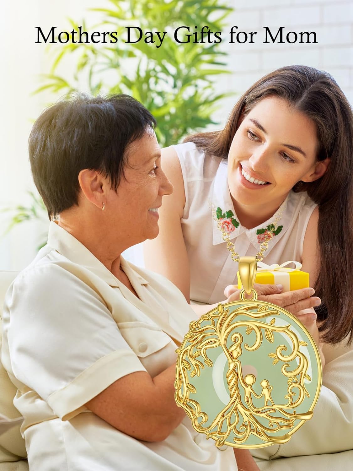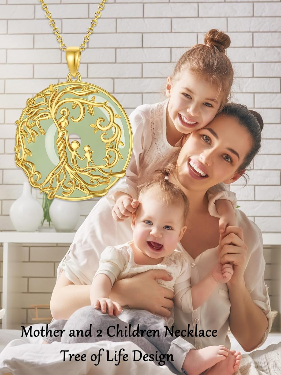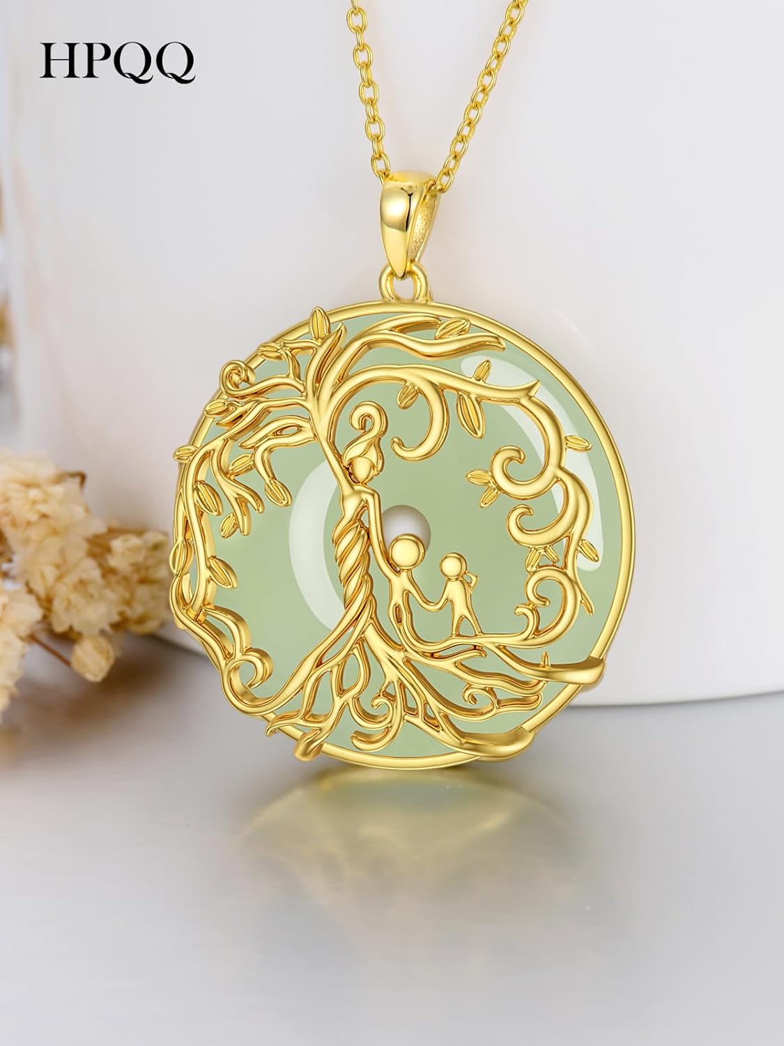 Gifts for Women Tree of Life Necklace 14k Gold Plated Sterling Silver Round Jade Jewelry for Women Mom Sister Birthday Christmas Gifts