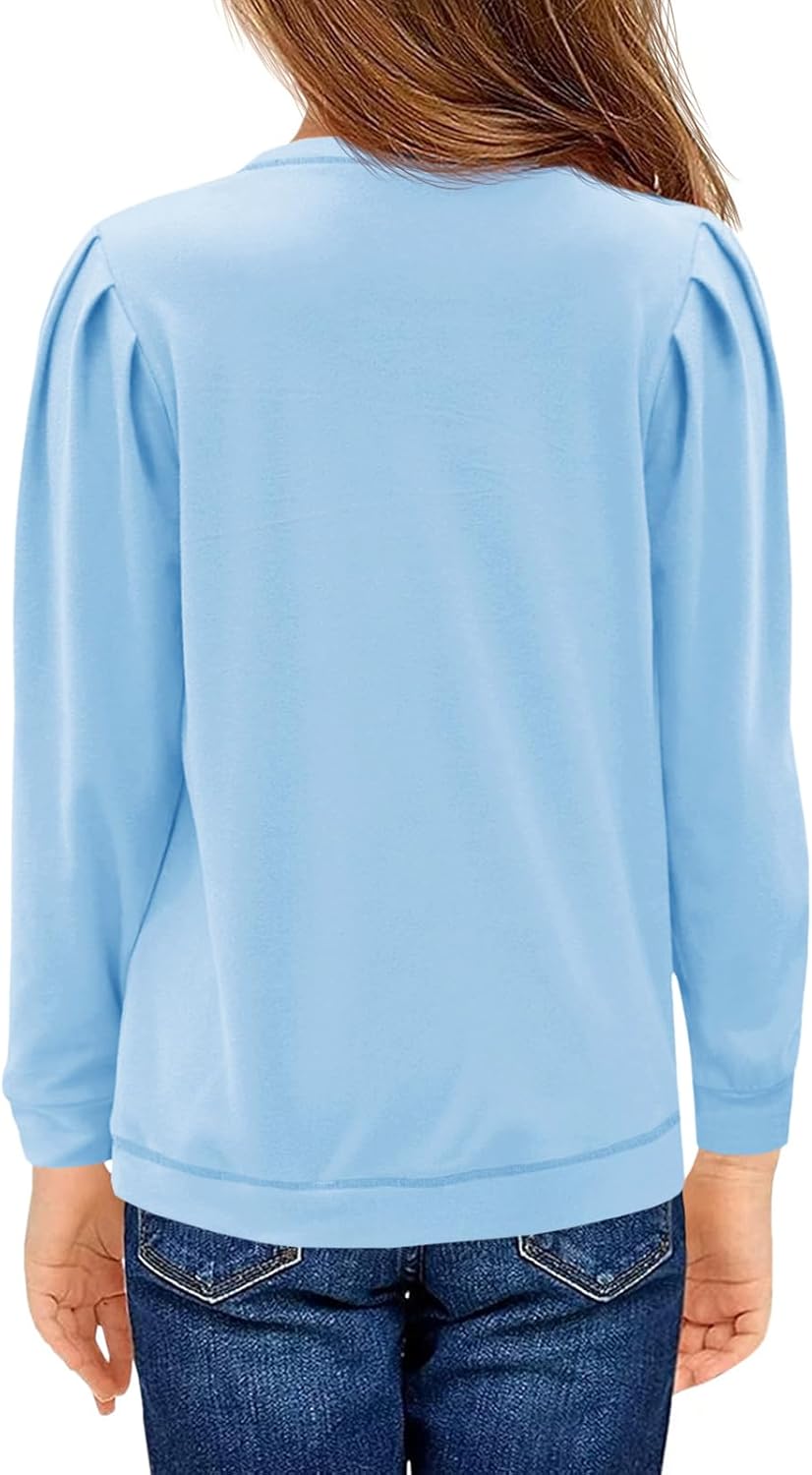 Girls Long Sleeve Shirts Kids Fashion Crewneck tops Cute Fall Outfits 5-14 Years