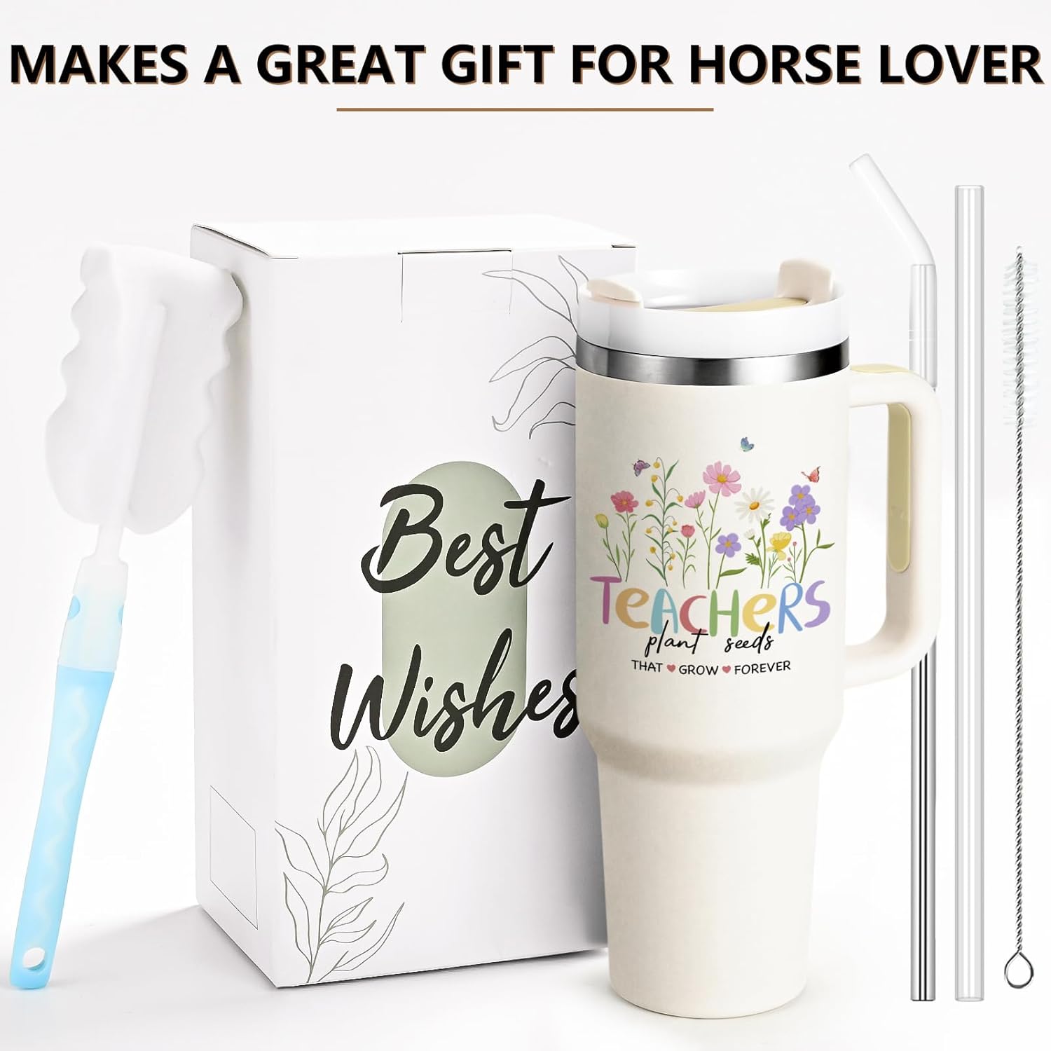 Gtmileo Teacher Tumbler, Teachers Appreciation Gifts, Teachers Plant Seeds That Grow Forever 40oz Insulated Tumbler, Preschool Teacher Gift for Women, Birthday Christmas Gifts from Stduents, Cream