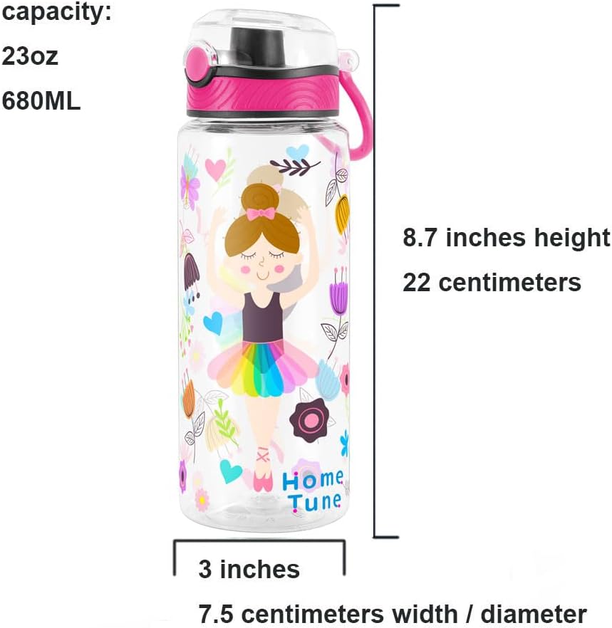 Home Tune Cute Water Bottle for School Kids Girls, BPA FREE Tritan & Leak Proof & Easy Clean & Carry Handle, 23oz/ 680ml (Dancing)
