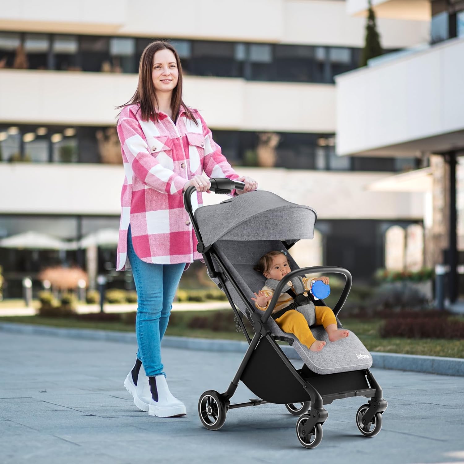 INFANS Lightweight Baby Stroller, Ultra-Compact Fold Airplane Ready Travel Stroller, One-Hand Gravity Fold Near Flat Recline Seat Cup Holder, Foldable Toddler Stroller for Infant 0-36 Month