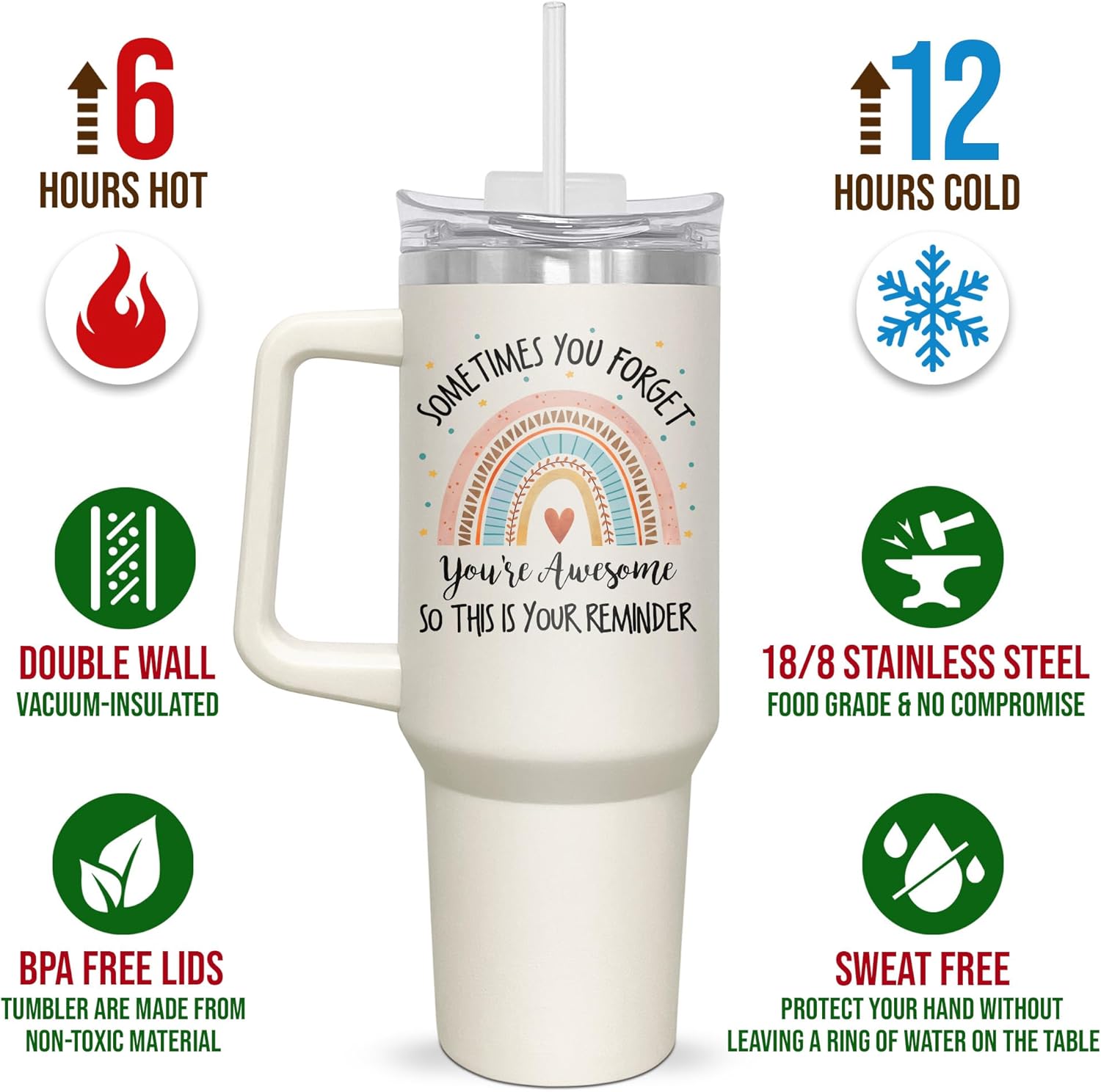 Inspirational Gifts For Women – Insulated 40 oz Tumbler with Straw and Handle – Birthday Christmas Retirement Thank You Encouragement Gifts For Women Friends Coworkers
