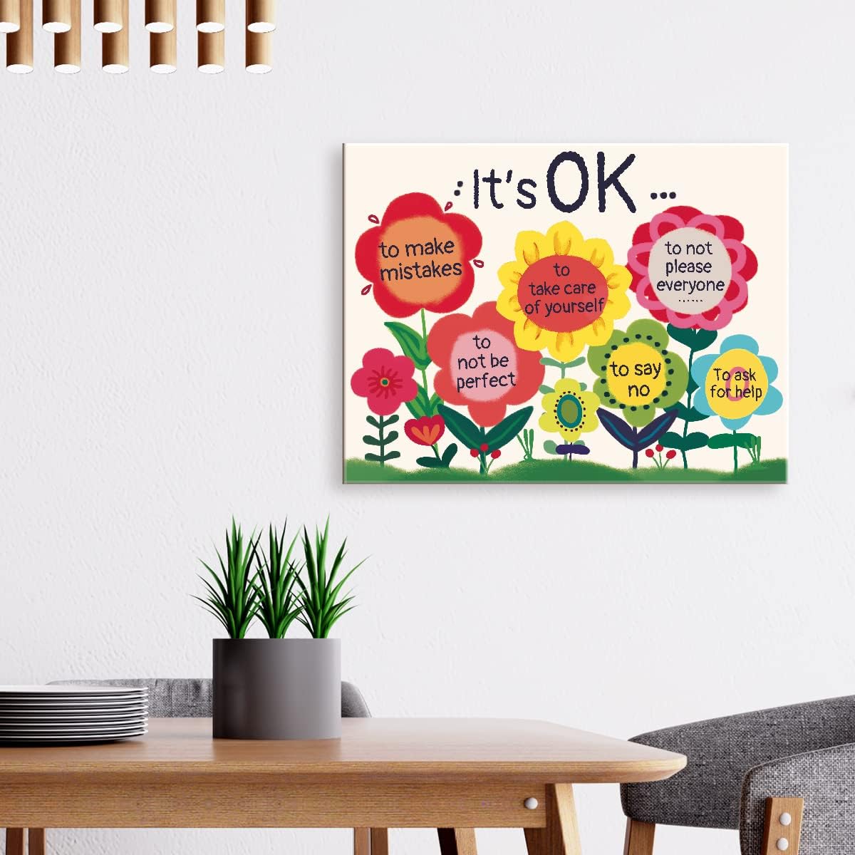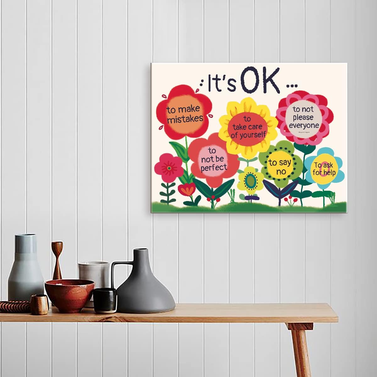It’s OK Colorful Flowers Inspirational Quote Canvas Framed Wall Art, Cute Motivational Canvas Framed Print for Teens Girls Home Bedroom Dorm Office Wall Decor 15″ x 12″