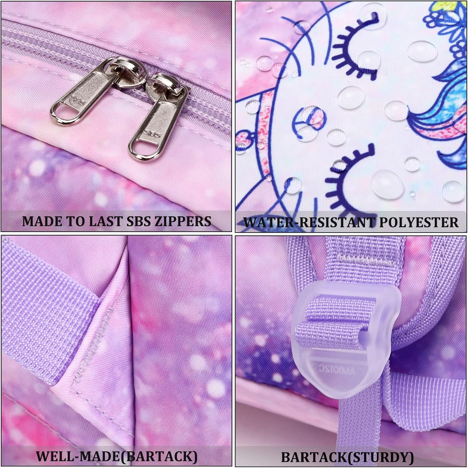 I’m giving 5 starsâââââ bc this bookbag and lunch bag is very unique. My daughter loves anything kittens, unicorns and mermaids and this was all 3 combined. The kitten has a horn like a unicorn and also has a Mermaid tail. We looked for the perfect book bag for her but we could only find ones with just cats, unicorns and/or mermaids. Luckily I looked on Amazon and was just searching bookbags for girls and I found this ONE only a few scrolls down and I couldn’t believe it had all 3. My daughter was 5 and about to enter Kindergarten when I purchased it and I’m happy I did bc I didn’t tell her and her eyes lite up with joy when I surprised her with it. They had it in a few other colors, however I purchased the purple bc that is her favorite color! The bookbag was pricey but the quality is good, it has a lot of space and it was the perfect size for her compared to others she tried on at department stores which hung down way too low for her to walk correctly. It’s very easy to clean, which it has almost made it a 10½ months without having to get washed, except to spot clean. If you have a young daughter in Elementary school who loves kittens, unicorns and mermaids then get this bc it’s the cutest and stylish bookbag I’ve seen and she has got so many compliments on how different it is and it’s not like a bookbag every girl in school would have if bought at a department store, bc very unique. It has 5 pockets and 2 mesh water bottle holders on each side, plus the lunch bag to match which can be velcroed on the front to hold the lunch bag so she doesn’t have to carry it. I’m hoping she will get a new boobag this year, but she loves this one so much that she could honestly use it again bc it’s still looks brand new. My daughter’s eyes and smile said it all! ð»ð¦ ð§ââï¸ Priceless. ð