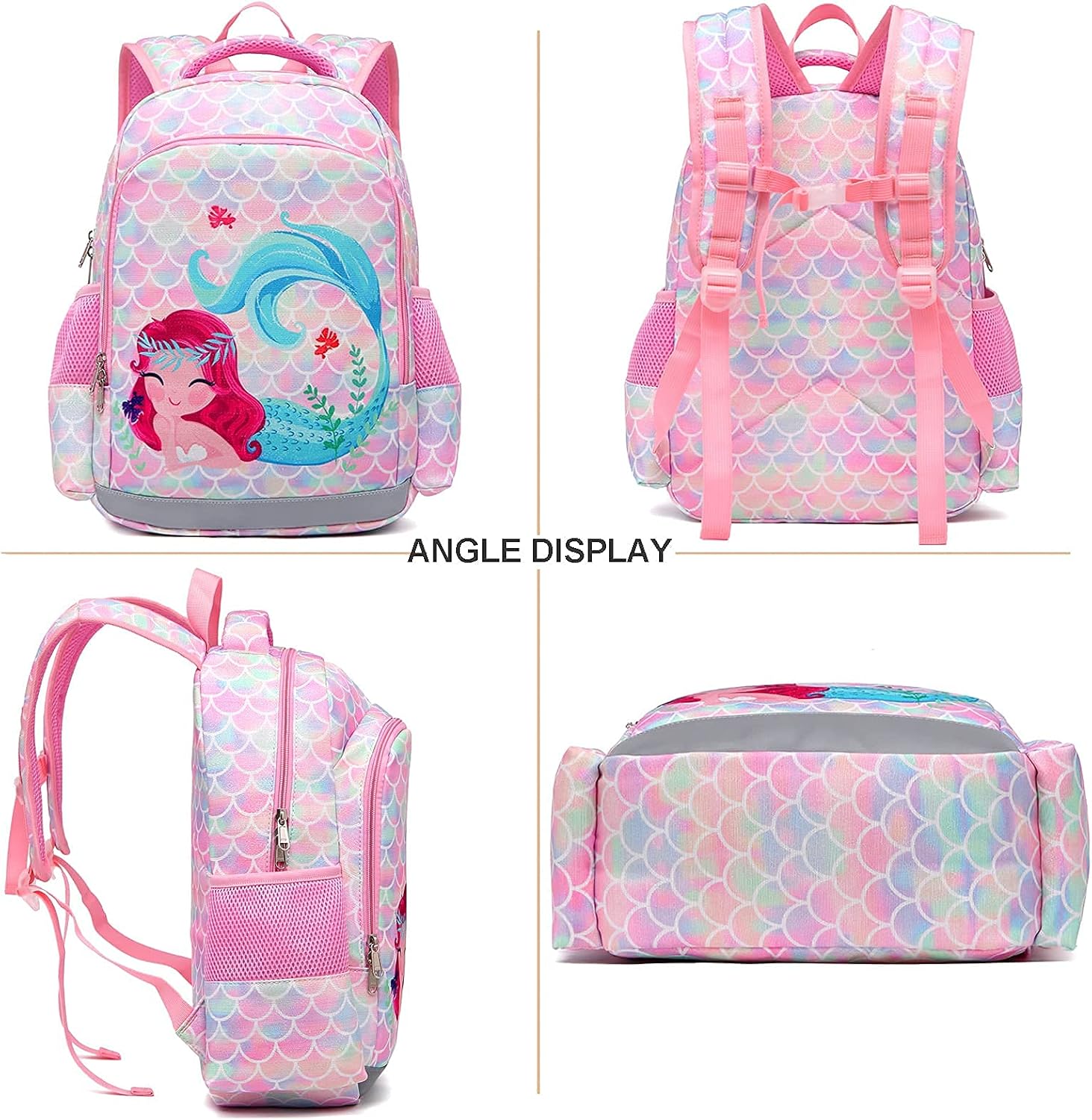 I’m giving 5 starsâââââ bc this bookbag and lunch bag is very unique. My daughter loves anything kittens, unicorns and mermaids and this was all 3 combined. The kitten has a horn like a unicorn and also has a Mermaid tail. We looked for the perfect book bag for her but we could only find ones with just cats, unicorns and/or mermaids. Luckily I looked on Amazon and was just searching bookbags for girls and I found this ONE only a few scrolls down and I couldn’t believe it had all 3. My daughter was 5 and about to enter Kindergarten when I purchased it and I’m happy I did bc I didn’t tell her and her eyes lite up with joy when I surprised her with it. They had it in a few other colors, however I purchased the purple bc that is her favorite color! The bookbag was pricey but the quality is good, it has a lot of space and it was the perfect size for her compared to others she tried on at department stores which hung down way too low for her to walk correctly. It’s very easy to clean, which it has almost made it a 10½ months without having to get washed, except to spot clean. If you have a young daughter in Elementary school who loves kittens, unicorns and mermaids then get this bc it’s the cutest and stylish bookbag I’ve seen and she has got so many compliments on how different it is and it’s not like a bookbag every girl in school would have if bought at a department store, bc very unique. It has 5 pockets and 2 mesh water bottle holders on each side, plus the lunch bag to match which can be velcroed on the front to hold the lunch bag so she doesn’t have to carry it. I’m hoping she will get a new boobag this year, but she loves this one so much that she could honestly use it again bc it’s still looks brand new. My daughter’s eyes and smile said it all! ð»ð¦ ð§ââï¸ Priceless. ð
