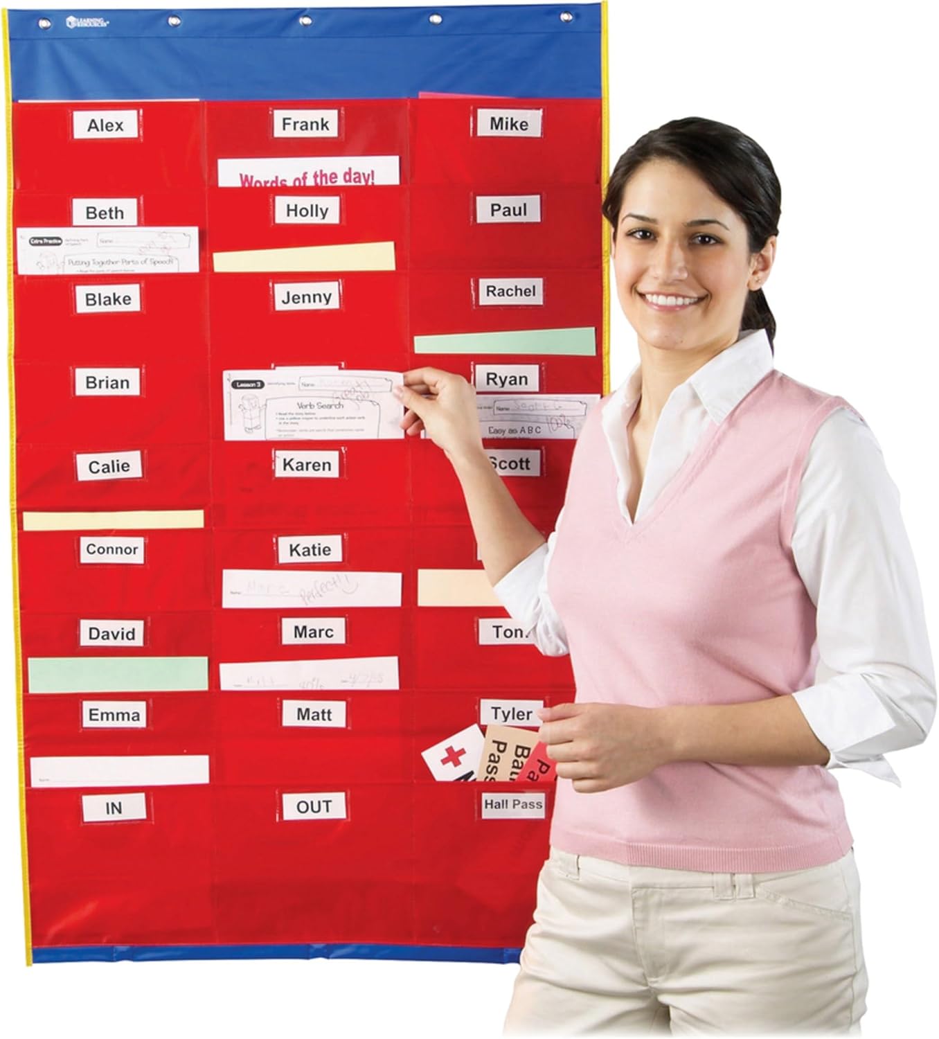 This pocket chart is perfect for classroom organization. I use it for students to turn in class work, homework, tests, and quizzes. The best part is that when I go to take the papers out, they are already in alphabetical order and I can instantly tell which assignments I am missing.