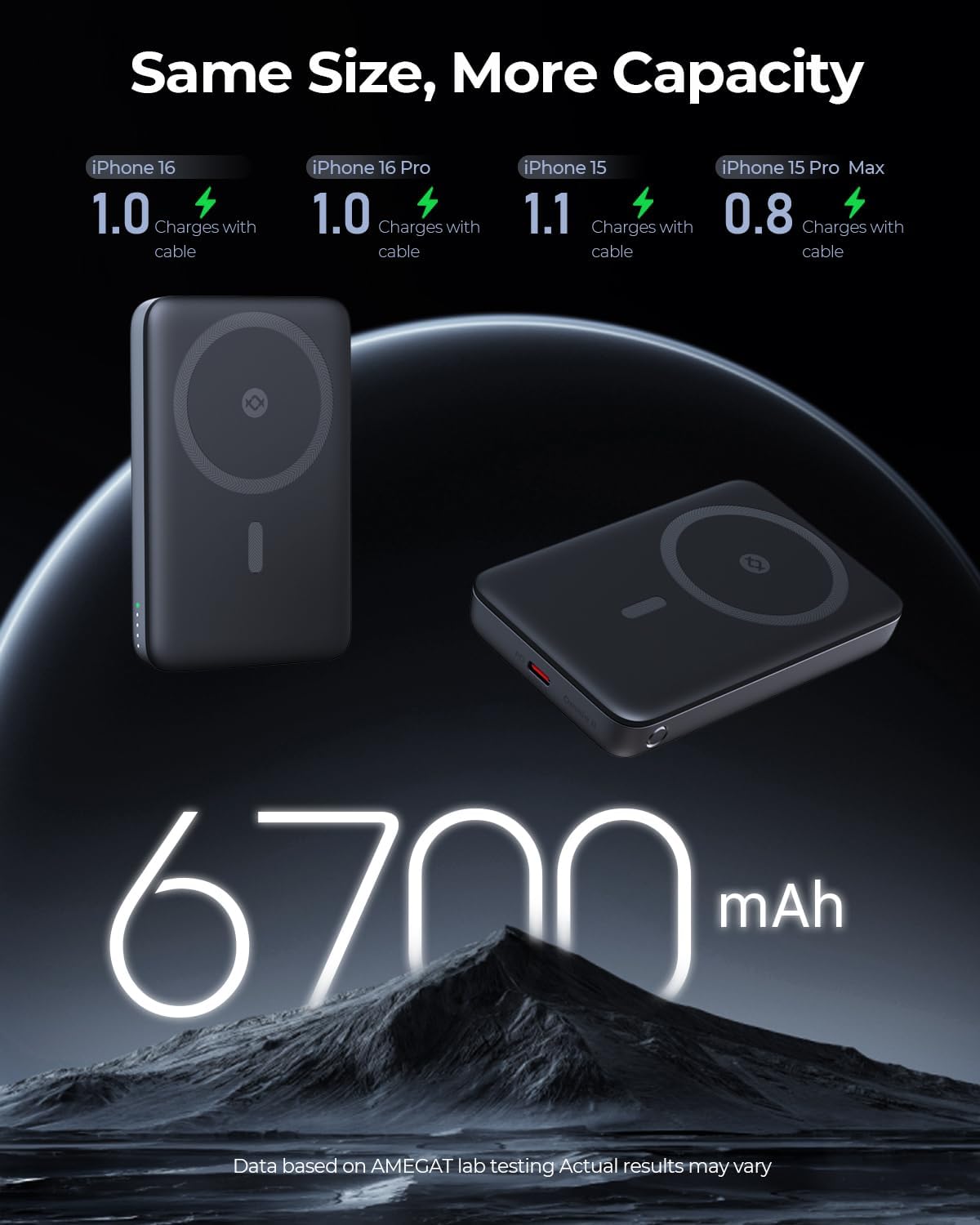 6700mAh Large Capacity: The AMEGAT wireless portable charger can provide your phone with an extra 25 hours of video playback time. Ensure you stay active during long trips and busy workdays