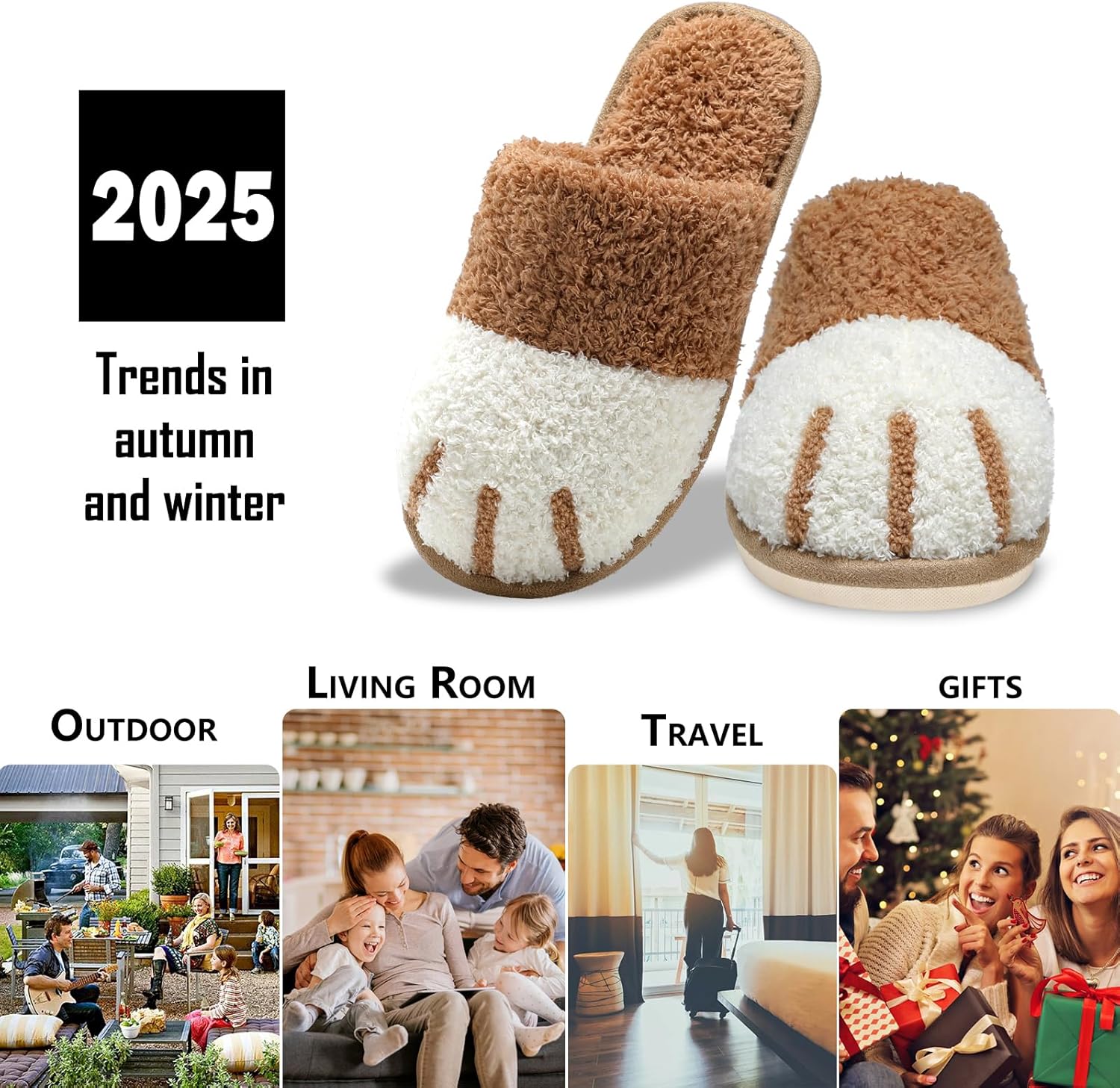 MAXTOP Women’s Cat Paw Cozy Slippers Warm Gifts for Women Men with Memory Foam Trendy Cute Fuzzy Winter House Shoes Indoor Outdoor