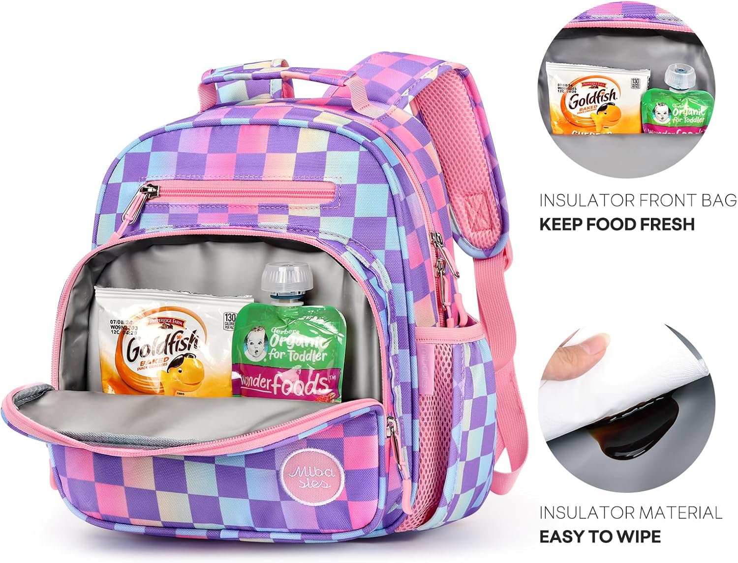 mibasies Toddler Backpack for Girls 2-4: Preschool Kindergarten Backpack – Cute Kids Backpacks for Girls – Checkerboard
