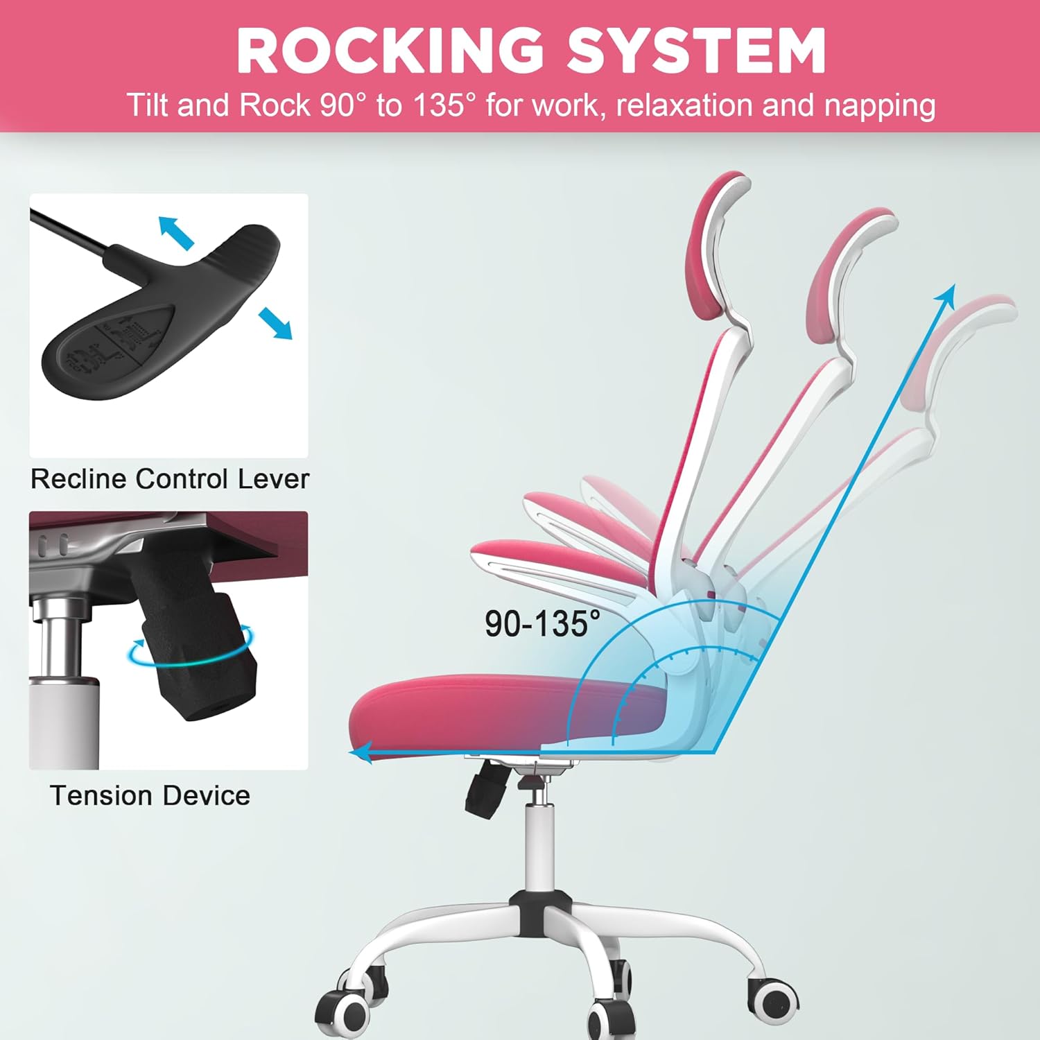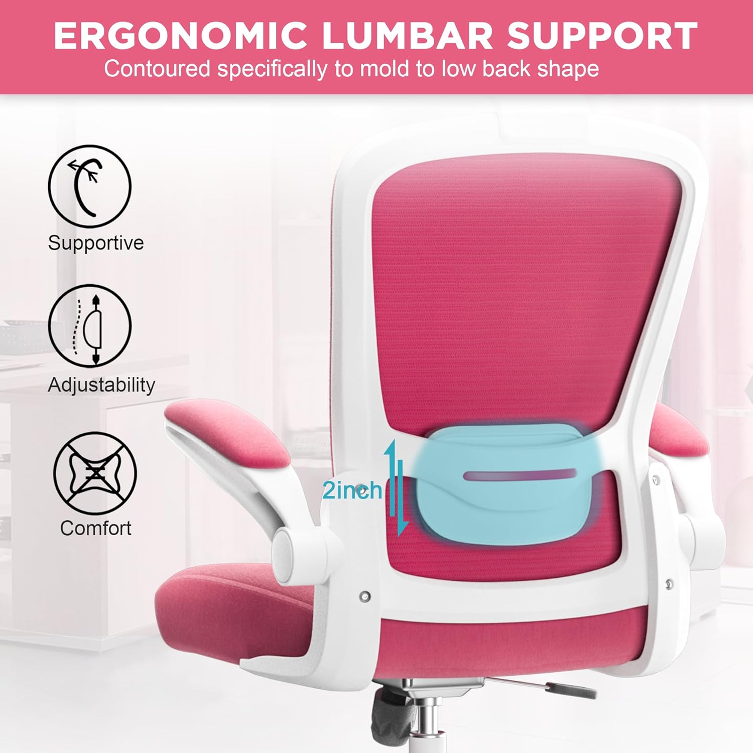 Mimoglad Office Chair, High Back Ergonomic Desk Chair with Adjustable Lumbar Support and Headrest, Swivel Task Chair with flip-up Armrests for Guitar Playing (Modern, Barbie Pink)