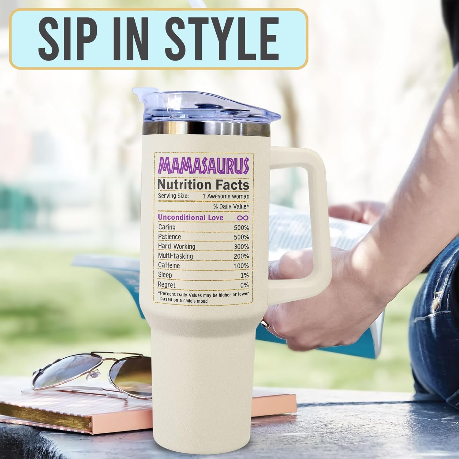 MULTI-PURPOSES FOR ANY OCCASIONS – Our mom tumbler 40oz with Handle is suitable for any indoor or outdoor place. Let your mom enjoy her favorite drinks no matter where she is with this funny mom gifts double-wall vacuum insulation.