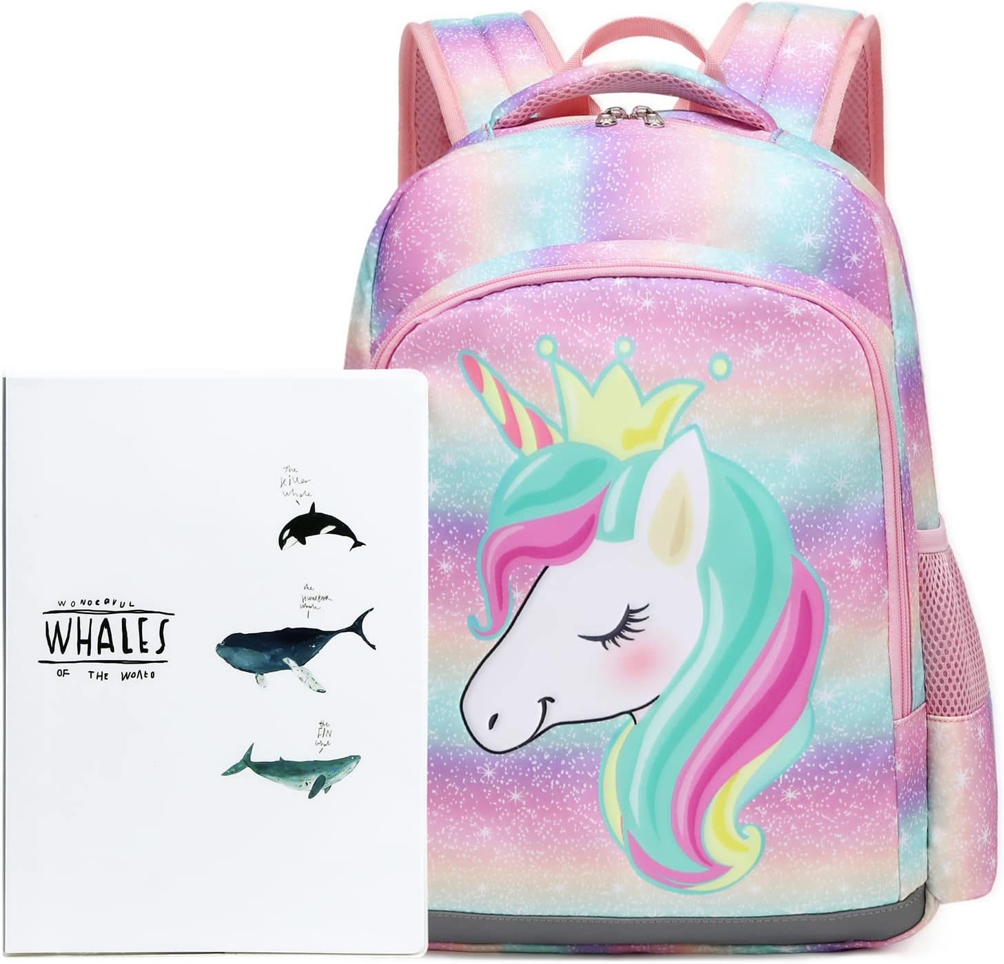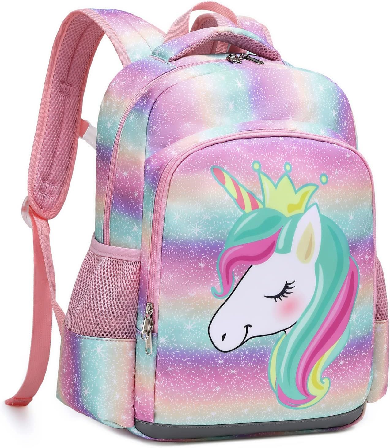 Octsky Unicorn Backpack for Girls, Kids Preschool Backpacks Cute Lightweight With Chest Strap and Lunchbox (Rainbow)