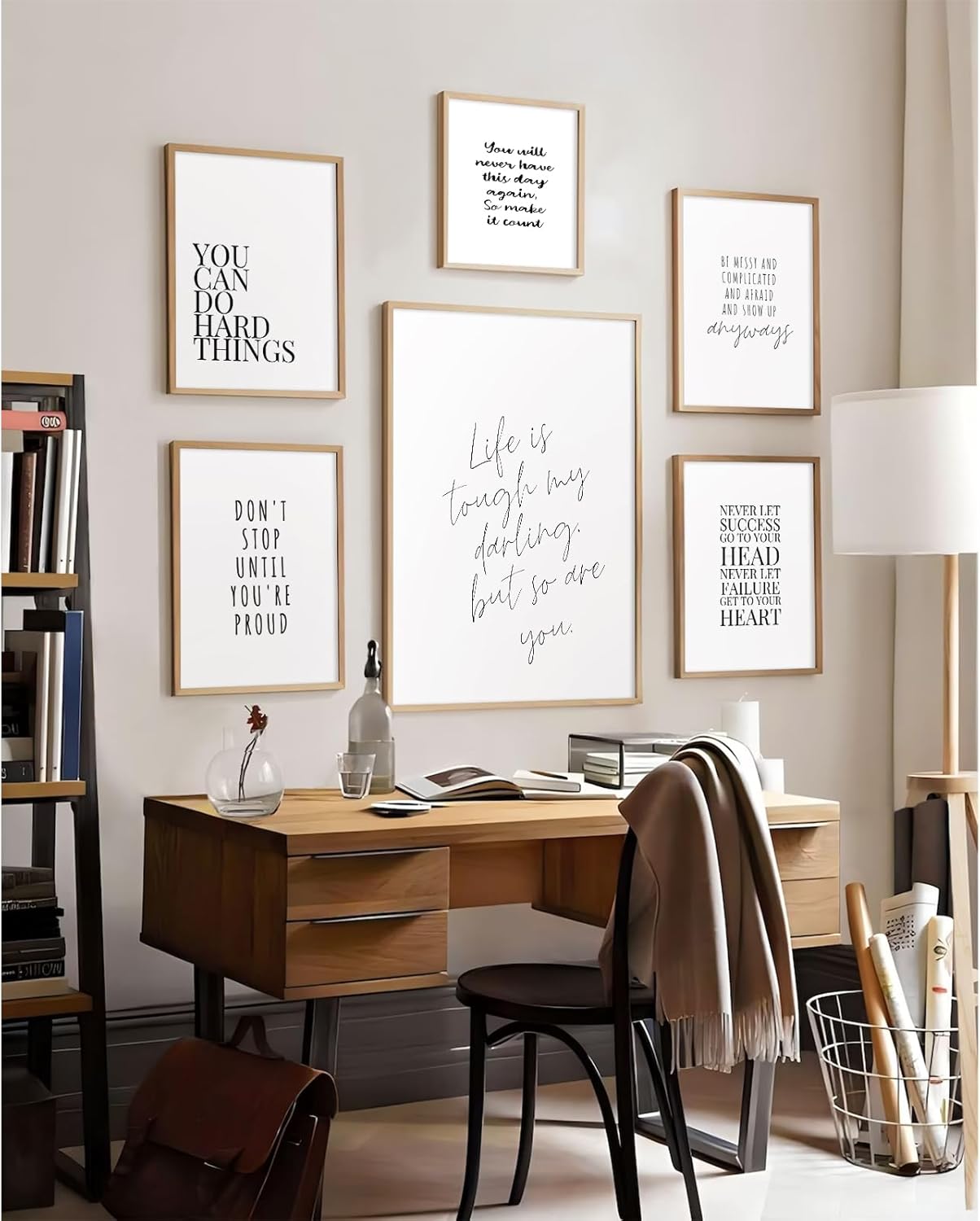 Office Inspirational Wall Art Decor Motivational Quotes Canvas Wall Art Positive Classroom Posters Pictures Office Inspirational Work Artwork for Women Home Bedroom 12×16 Inch Unframed Set of 6